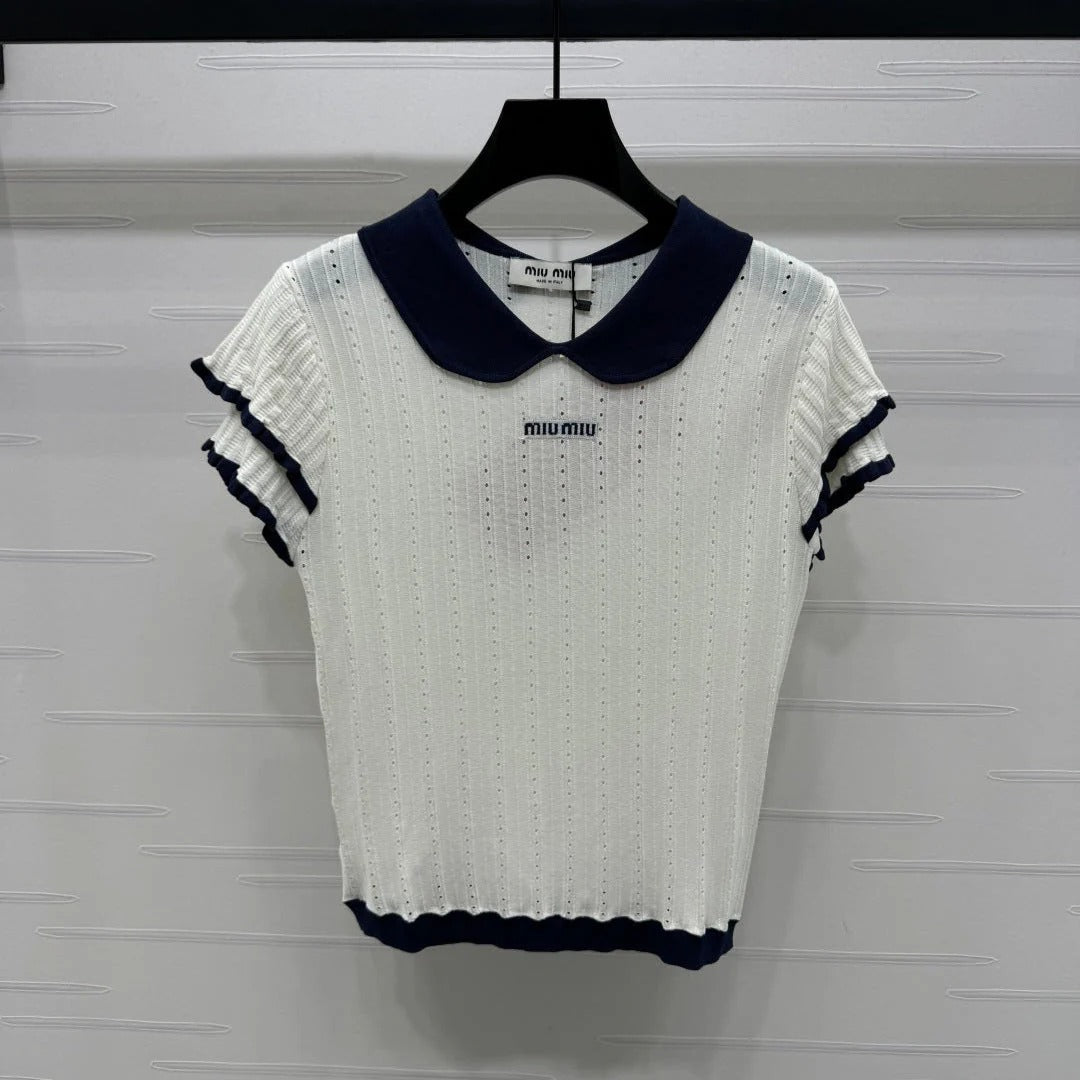 MIUMIU SHORT-SLEEVE PETER PAN COLLAR TOP 274825