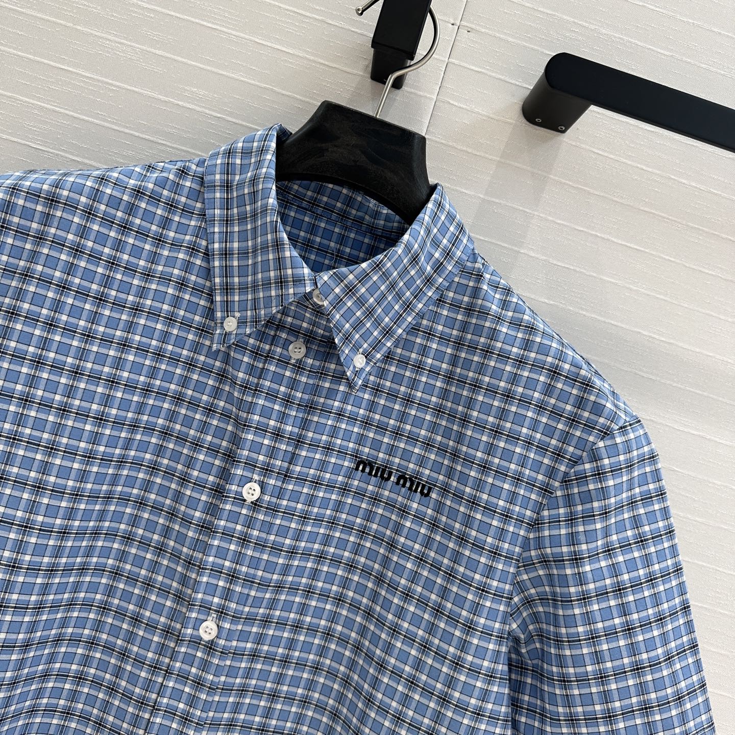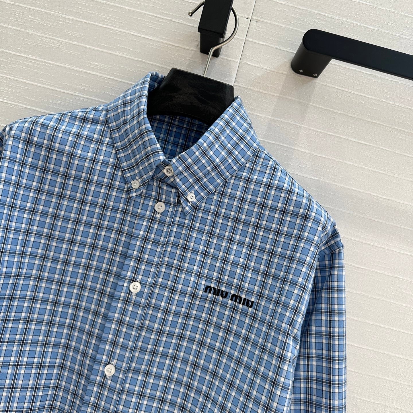 Miu Miu Plaid Short-cut Shirt Green Blue Wool