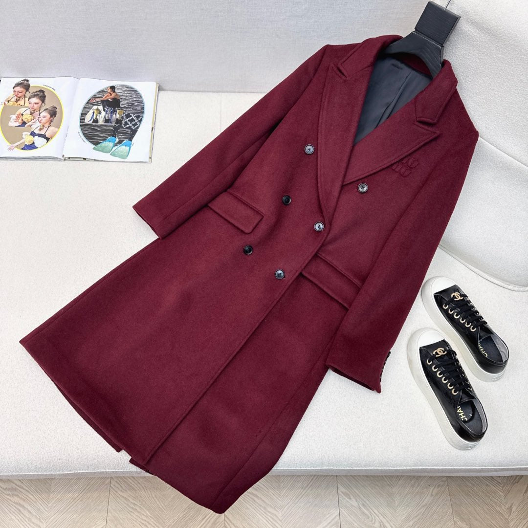 Miu Miu Long Suit Jacket Burgundy Polyester Wool