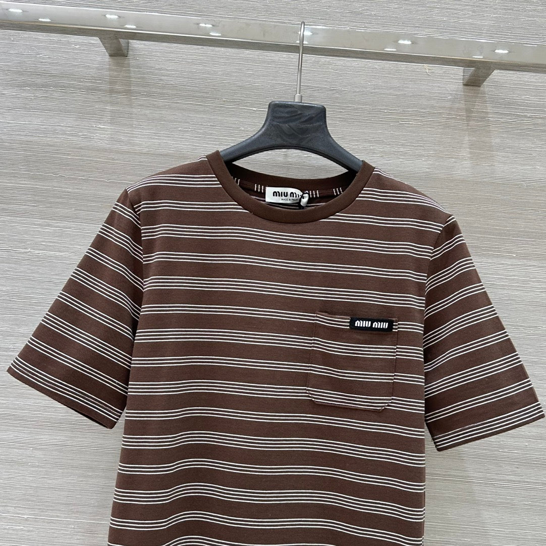 Miu Miu 25 Striped Round Neck Short-sleeved T-shirt Brown Cotton