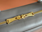 BEAU TOP HANDLE BAG 34 IN DARK GREY SMOOTH CALFSKIN