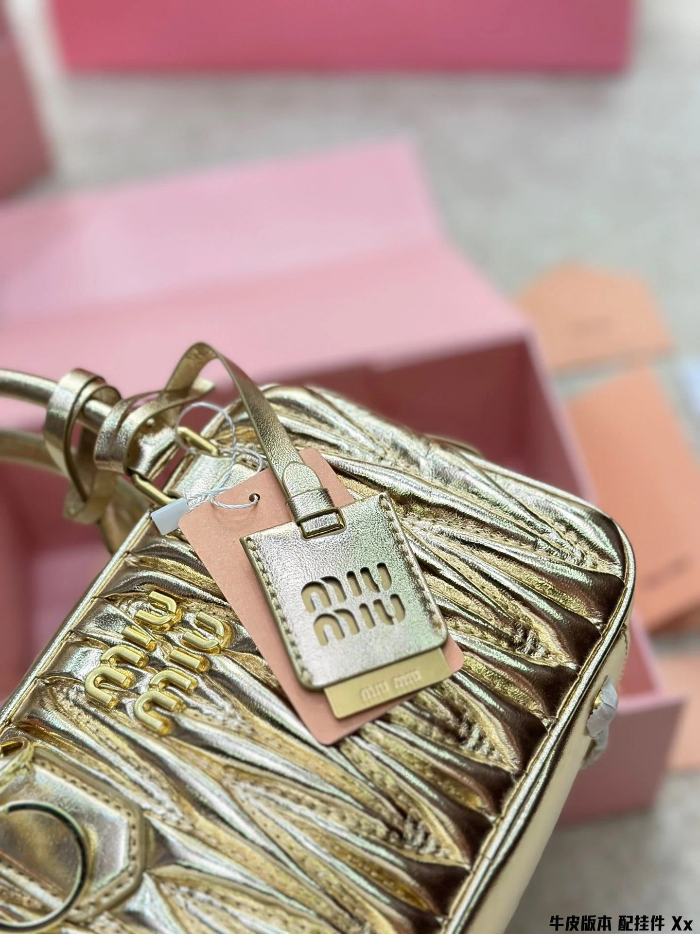 BOWLING BAG 21 IN GOLD LAMBSKIN