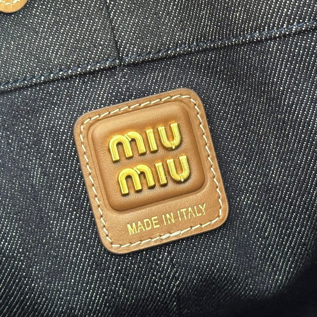 BUCKET BAG 29 DENIM BLUE AND BRANDY IN CANVAS