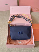 CHAIN SHOULDER BAG 19 IN NAVY BLUE FABRIC GOLD HARDWARE