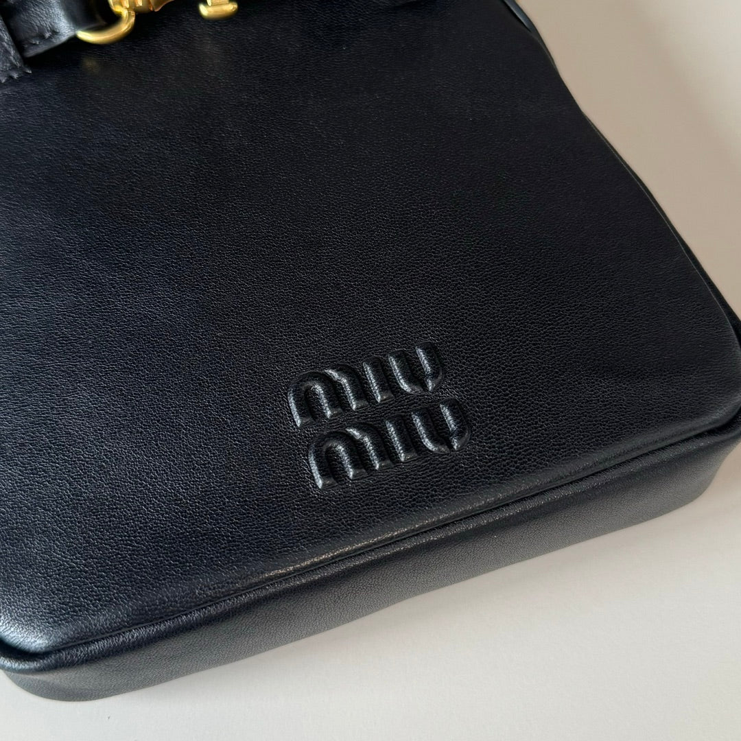 Miu Miu Beau Tote Bag Black Leather Gold-Tone Hardware