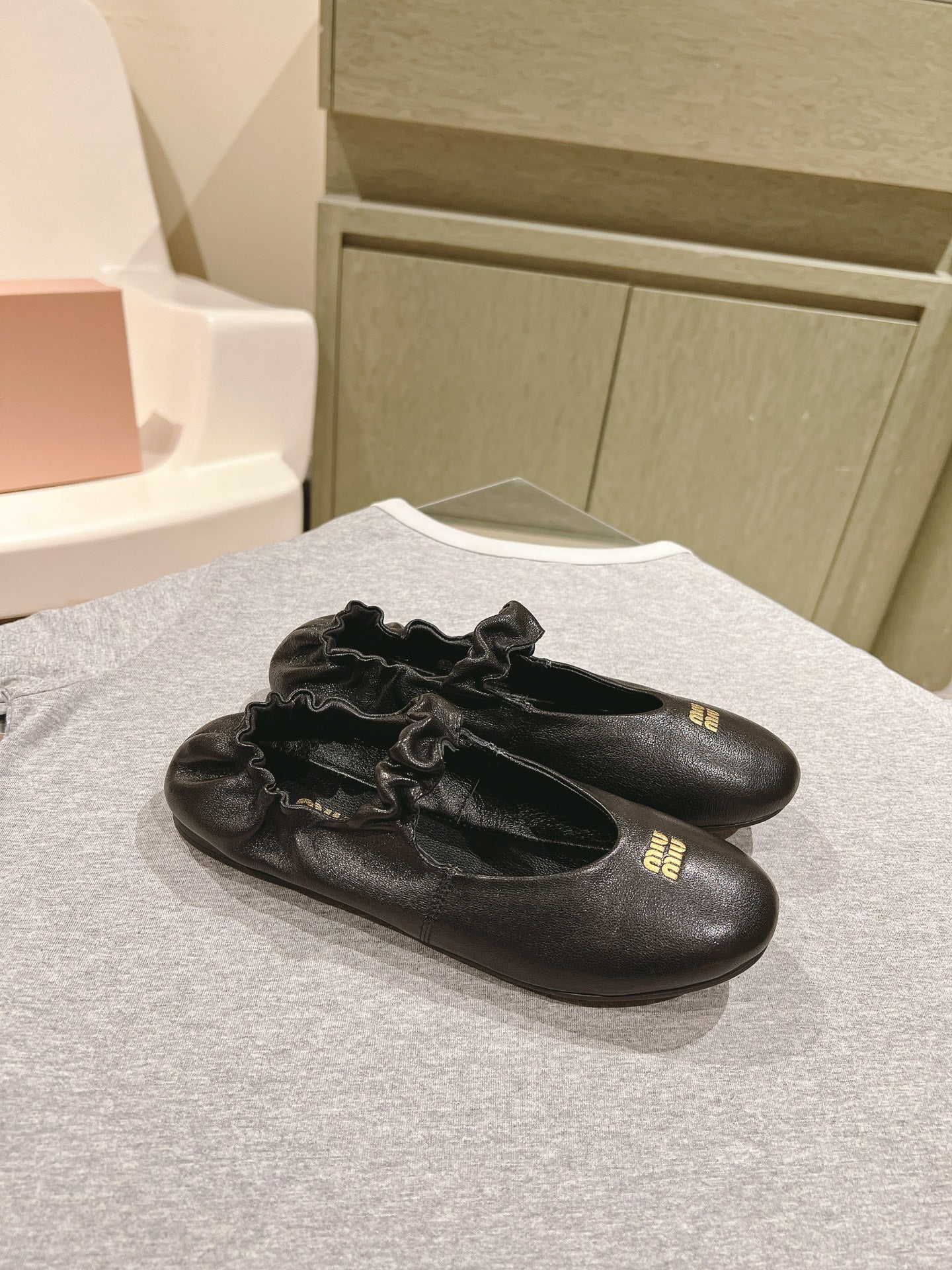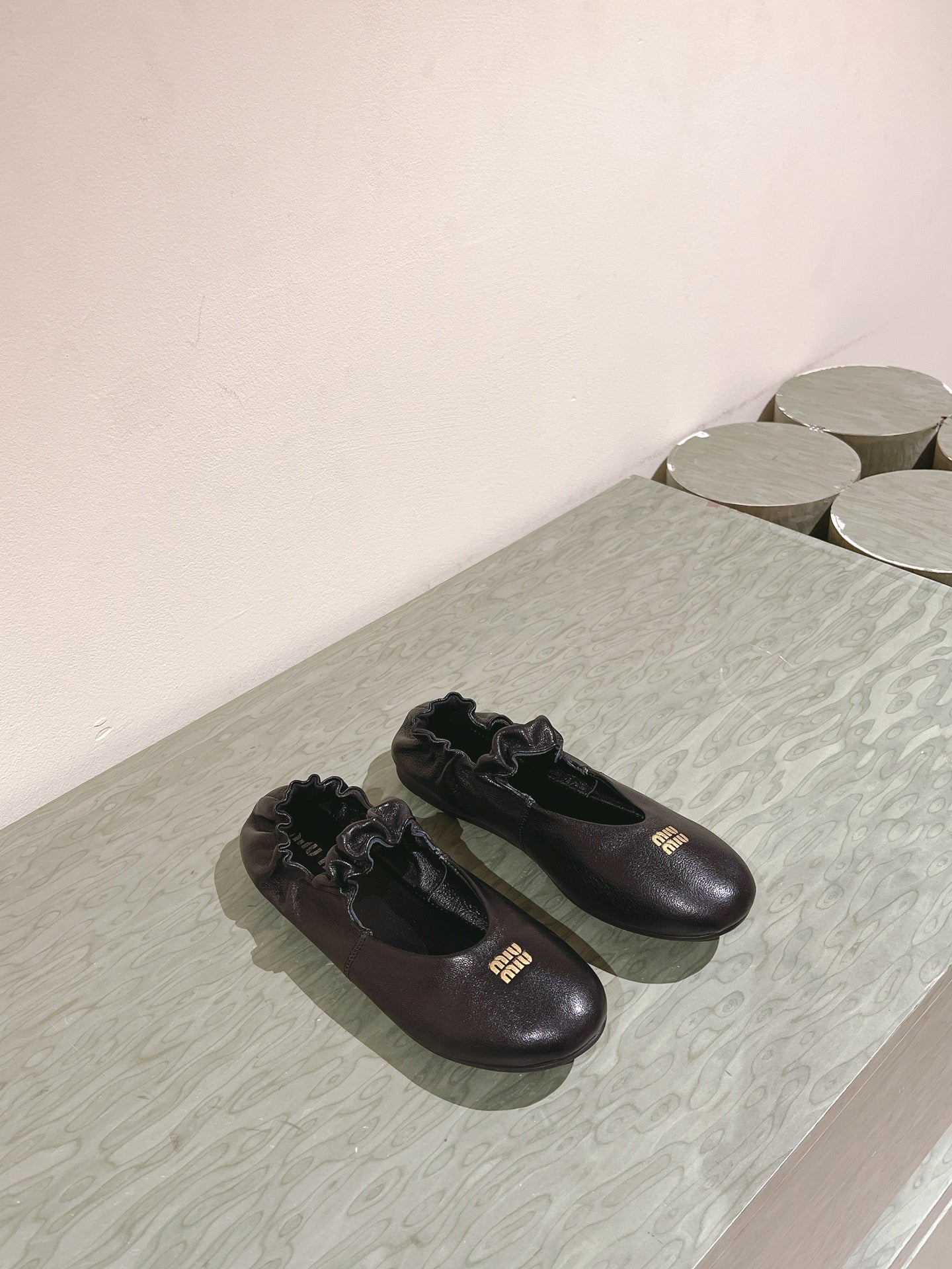 Miu Ruches Ballet Flat Black Lambskin 445668