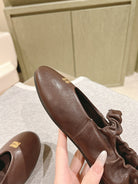 Miu Ruches Ballet Flat Brown Lambskin 445667