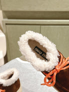 Miu Ankle Boots Caramel Fleece Lining Suede