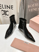 Miu Ankle Boots Pointed Toe Glossy Black Lambskin