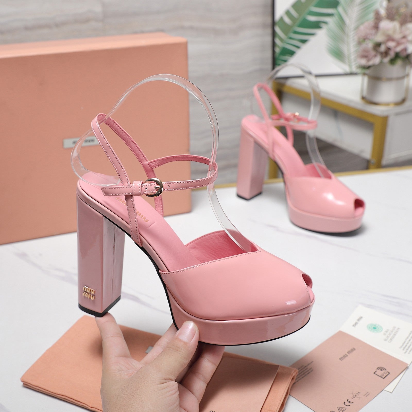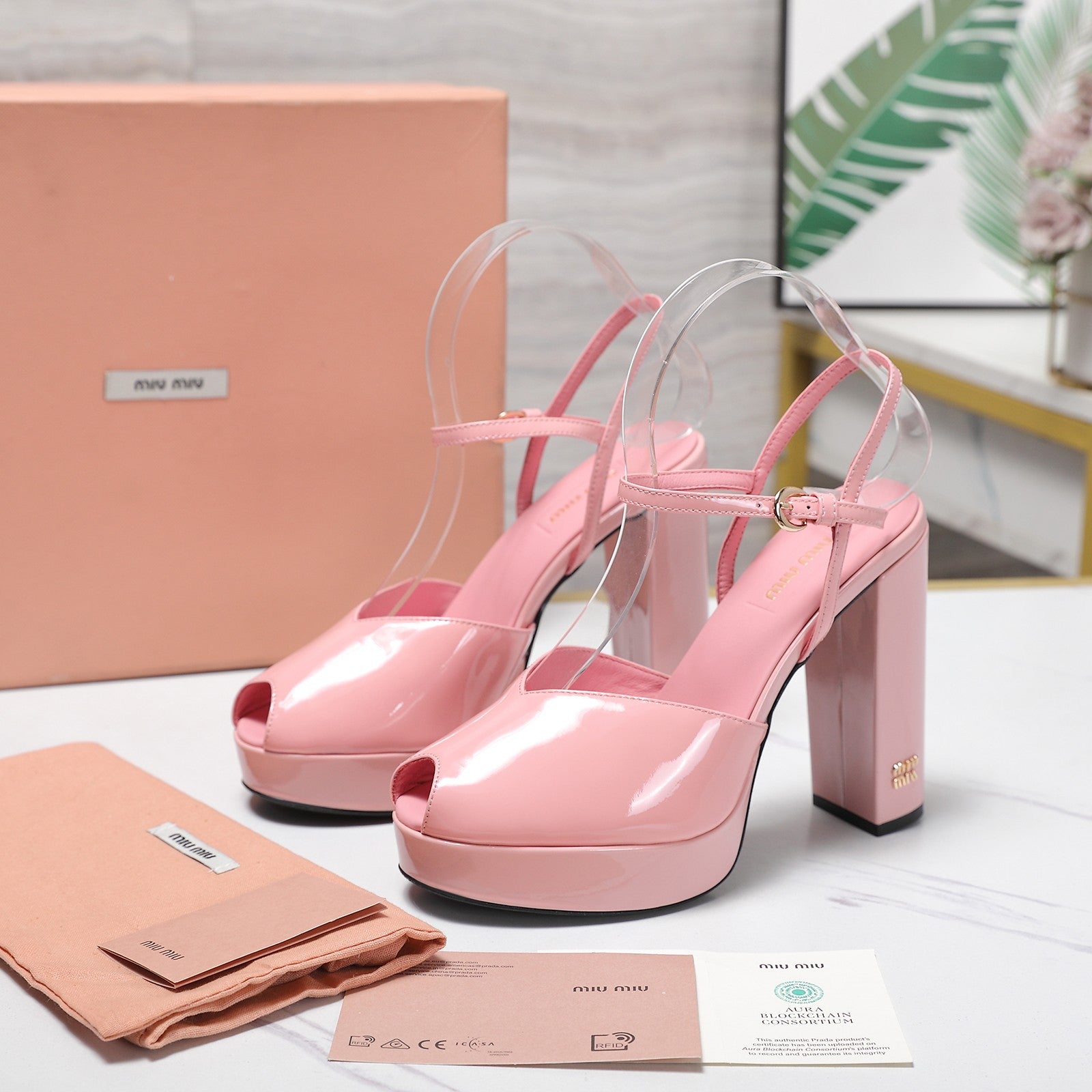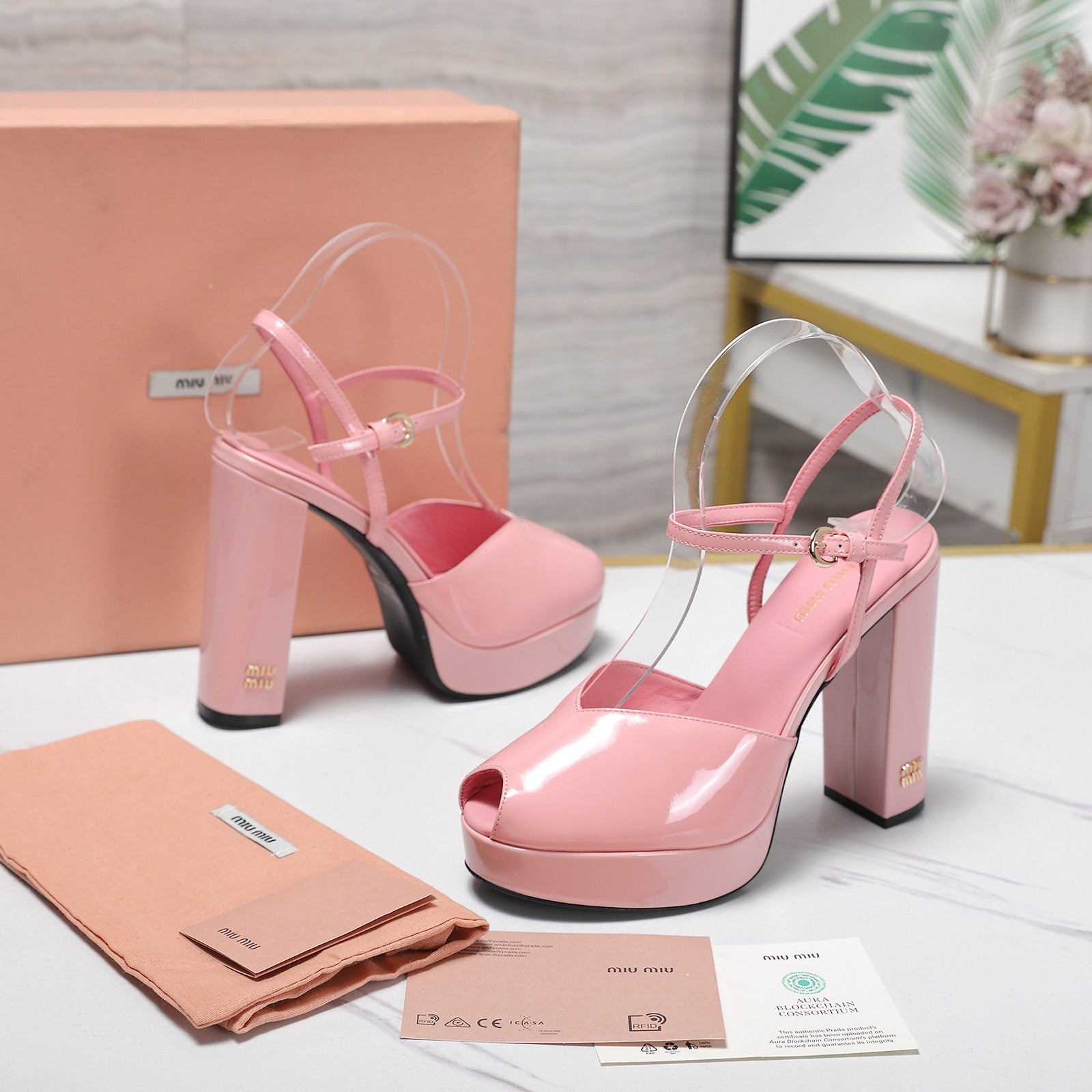Miu Block-Heel Platform Sandals 125mm Pink Patent Leather 504175