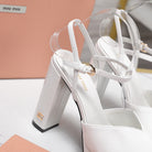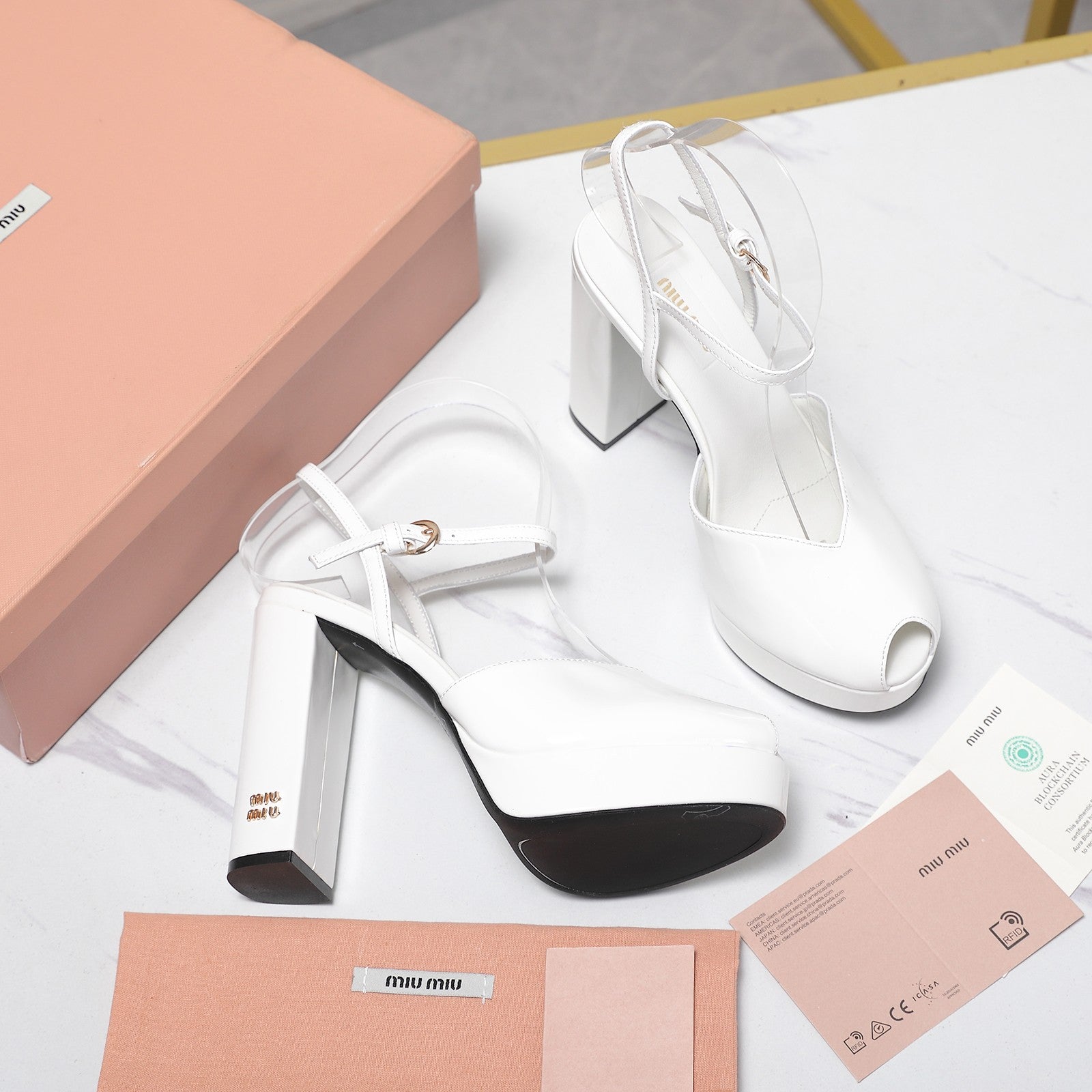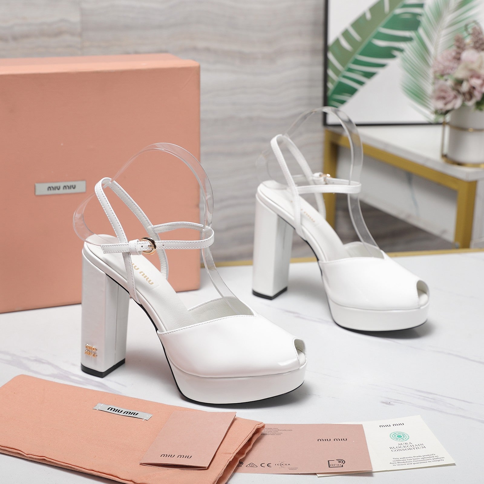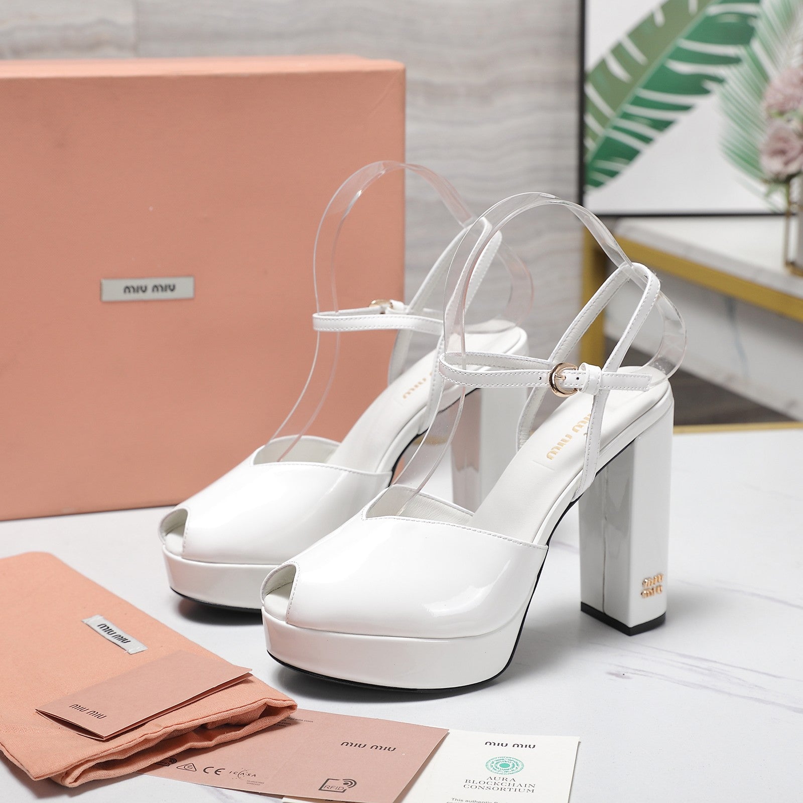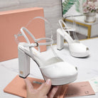 Miu Block-Heel Platform Sandals 125mm White Patent Leather 504174