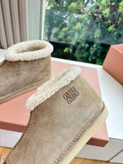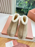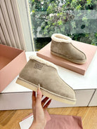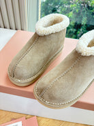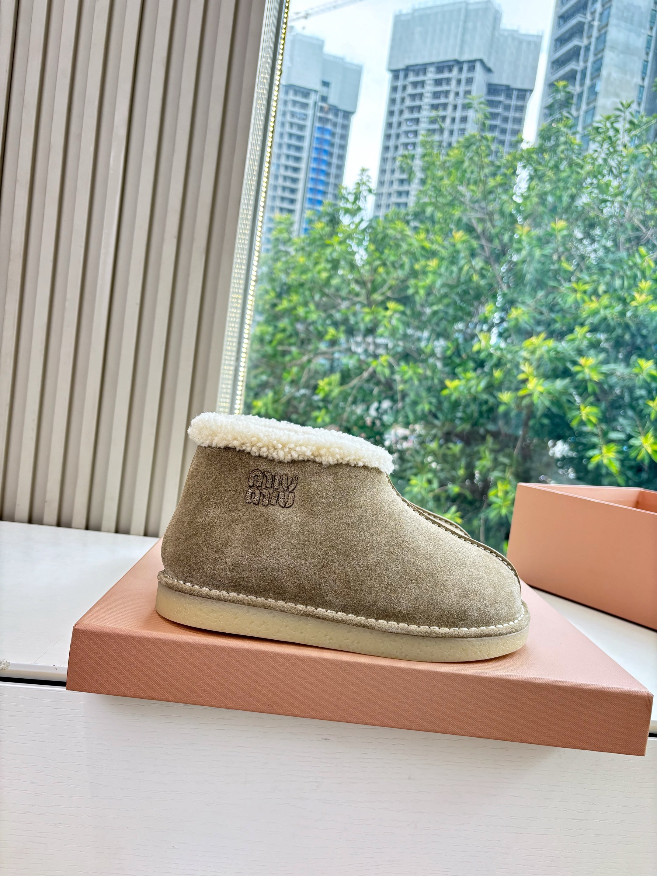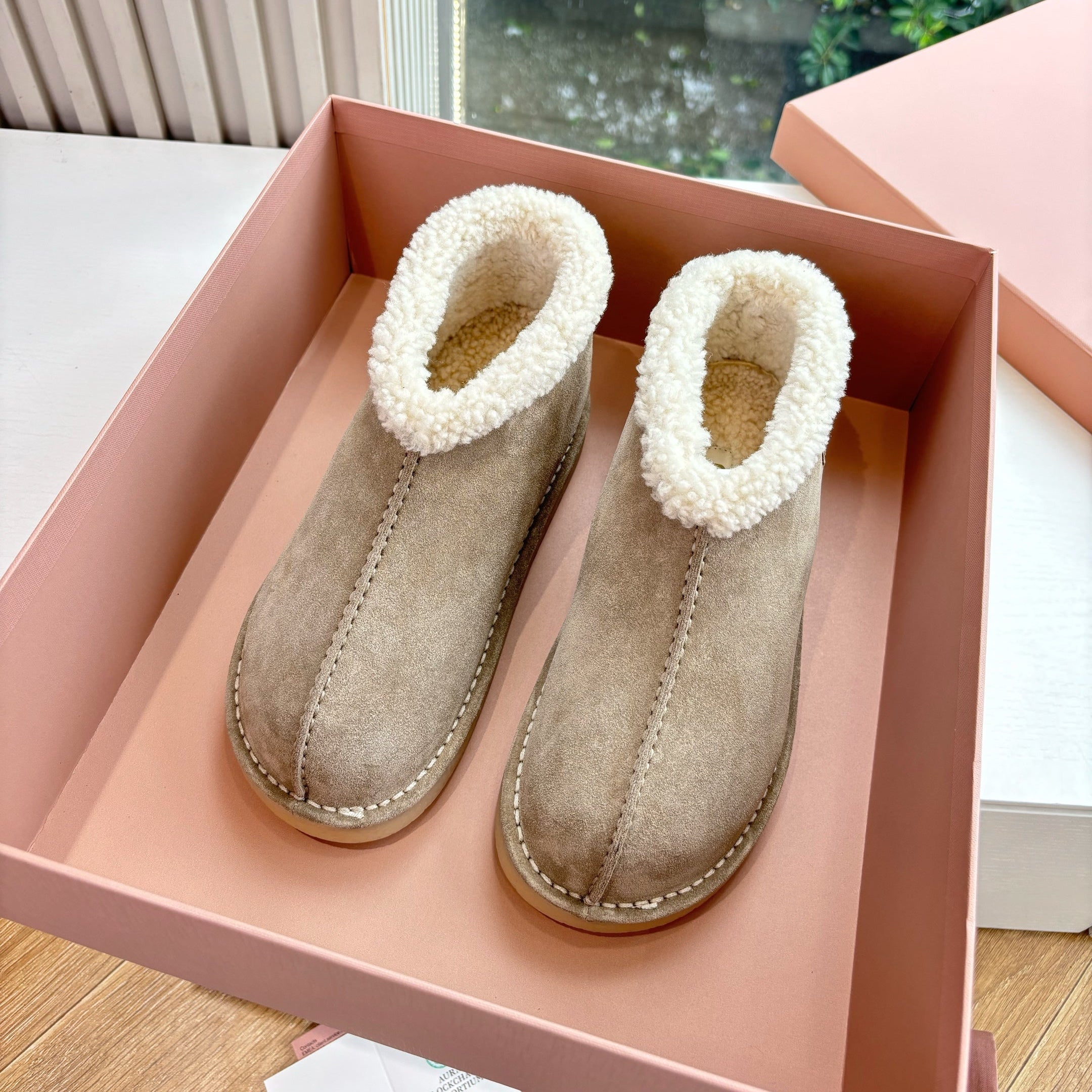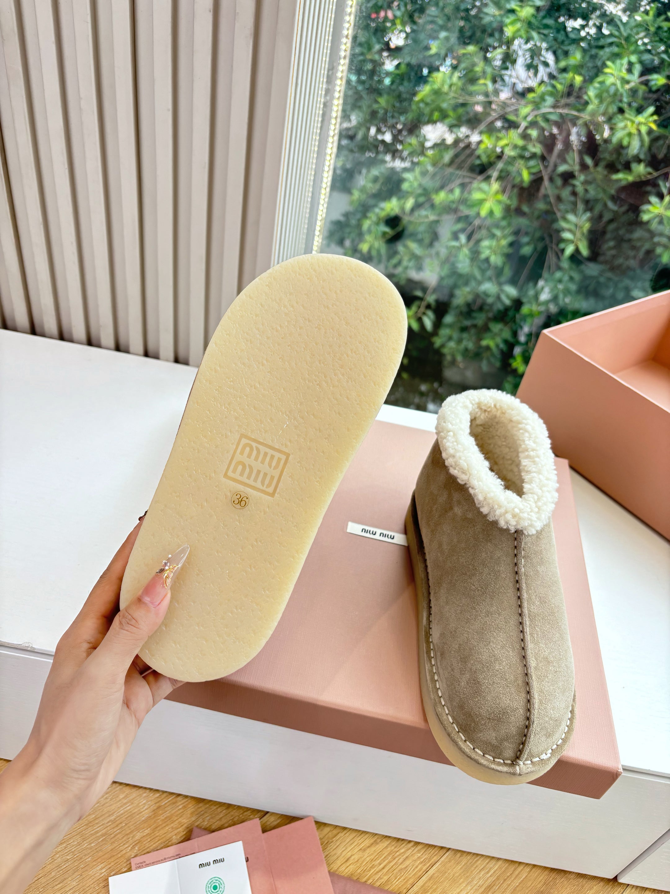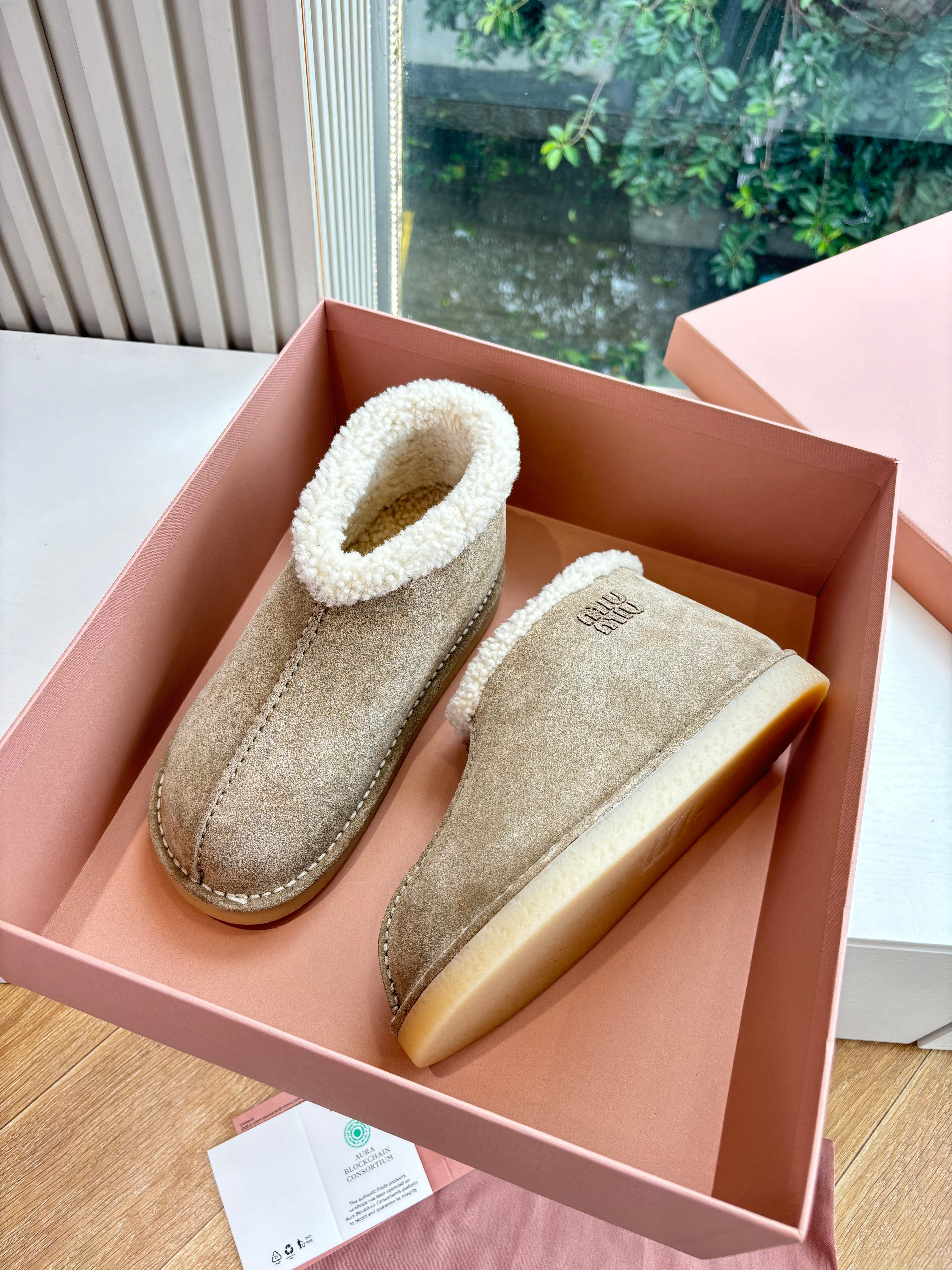 Miu FW25 Snow Boots Taupe White Wool Suede 506650