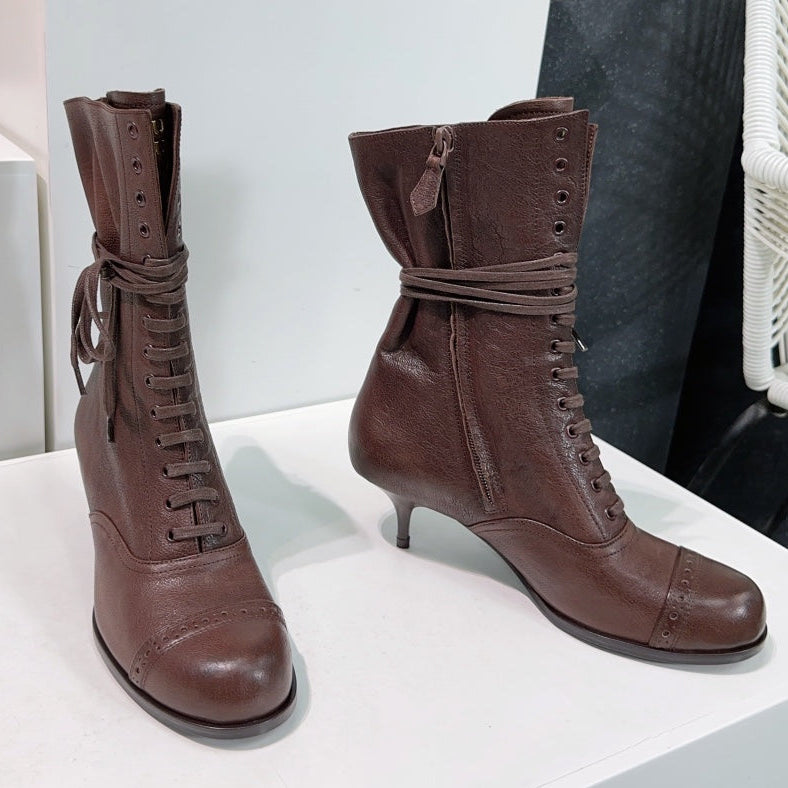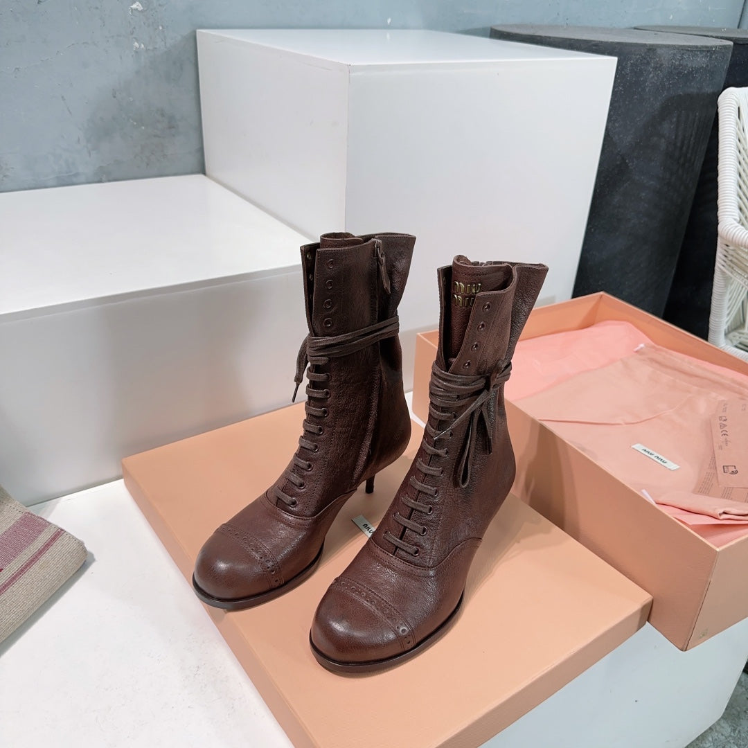 Miumiu 25 Low-heeled Ankle Boot Chocolate Brown Cowhide 511262