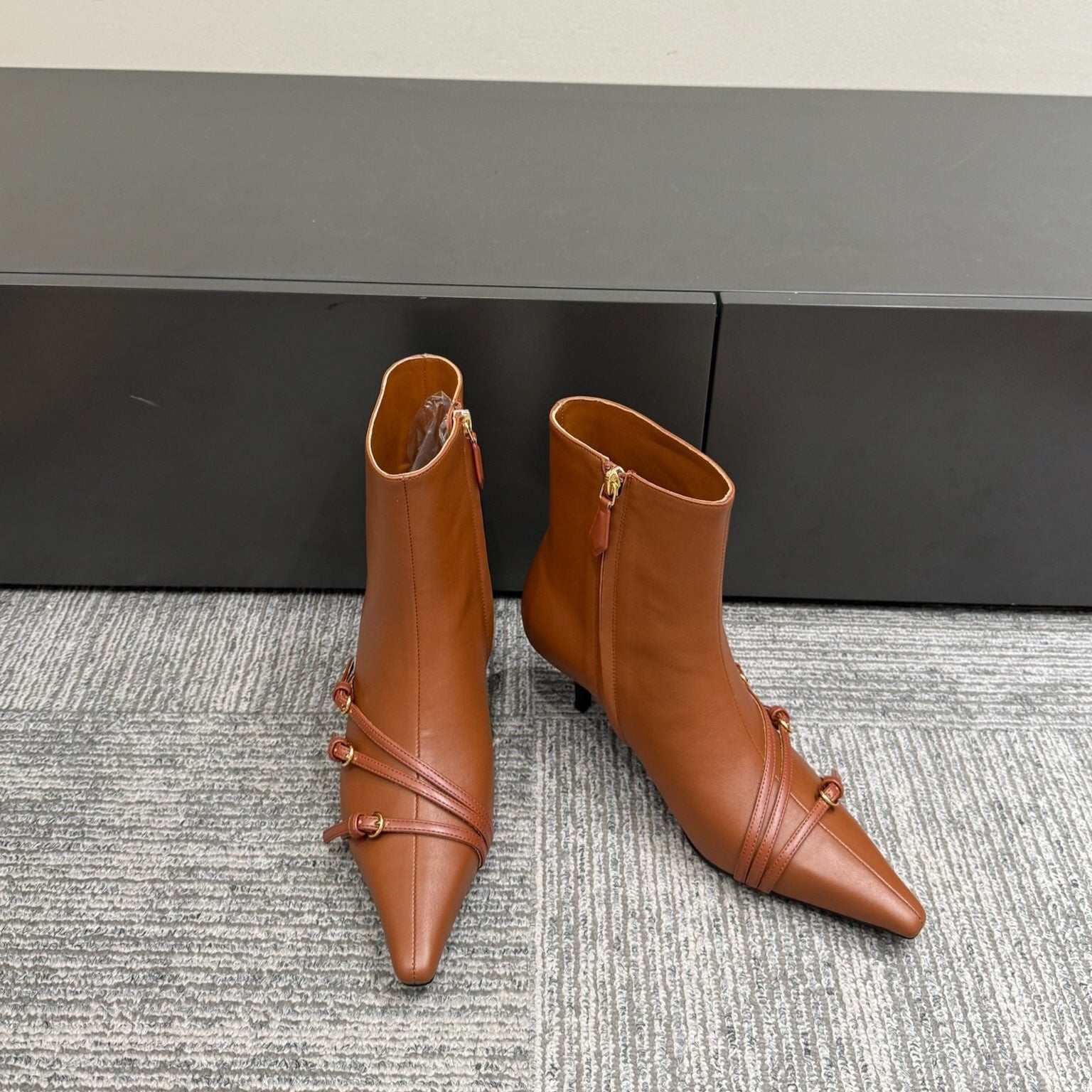 Miu Ankle Boots Pointed Toe Red Brown Lambskin