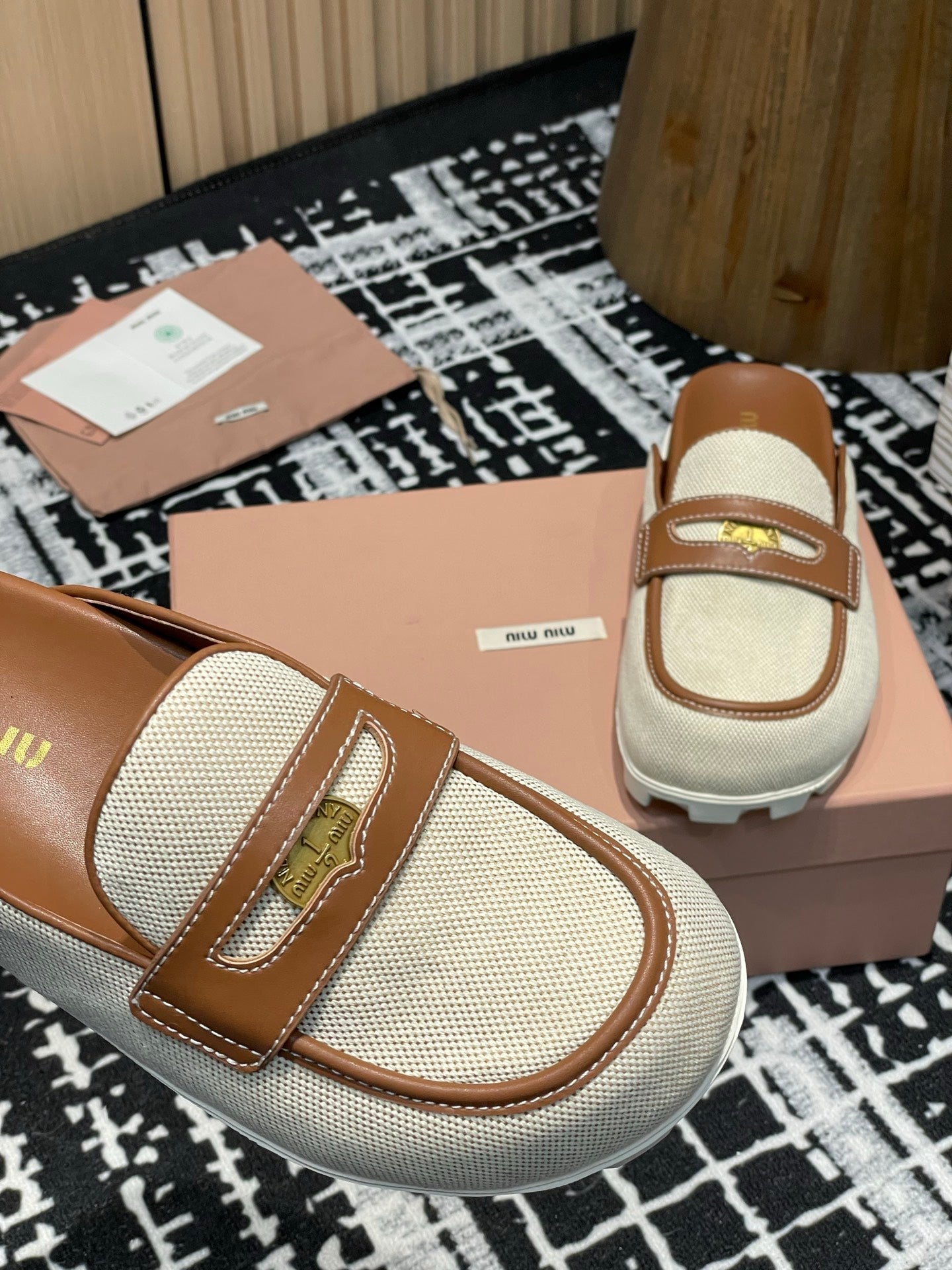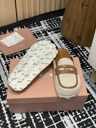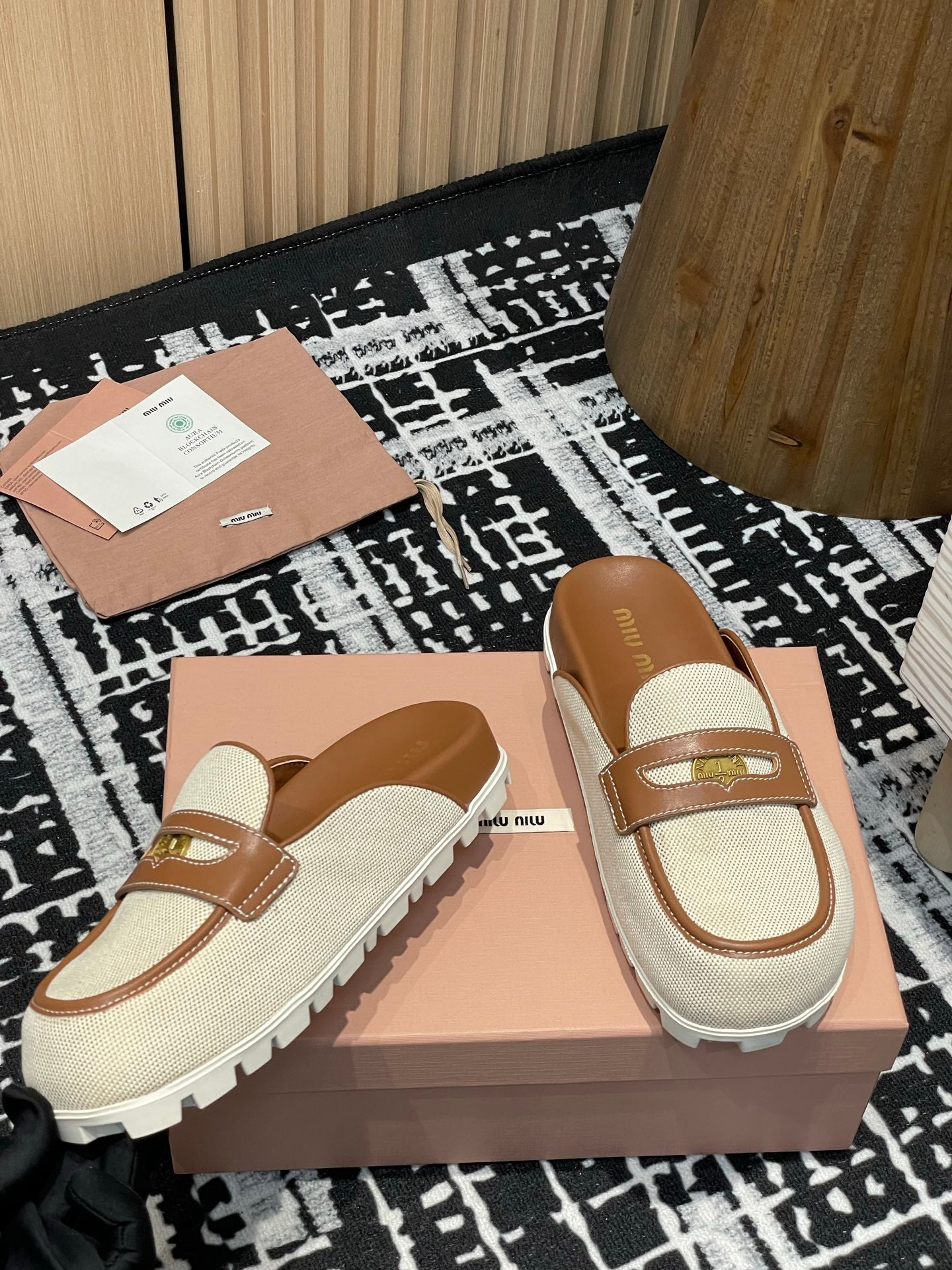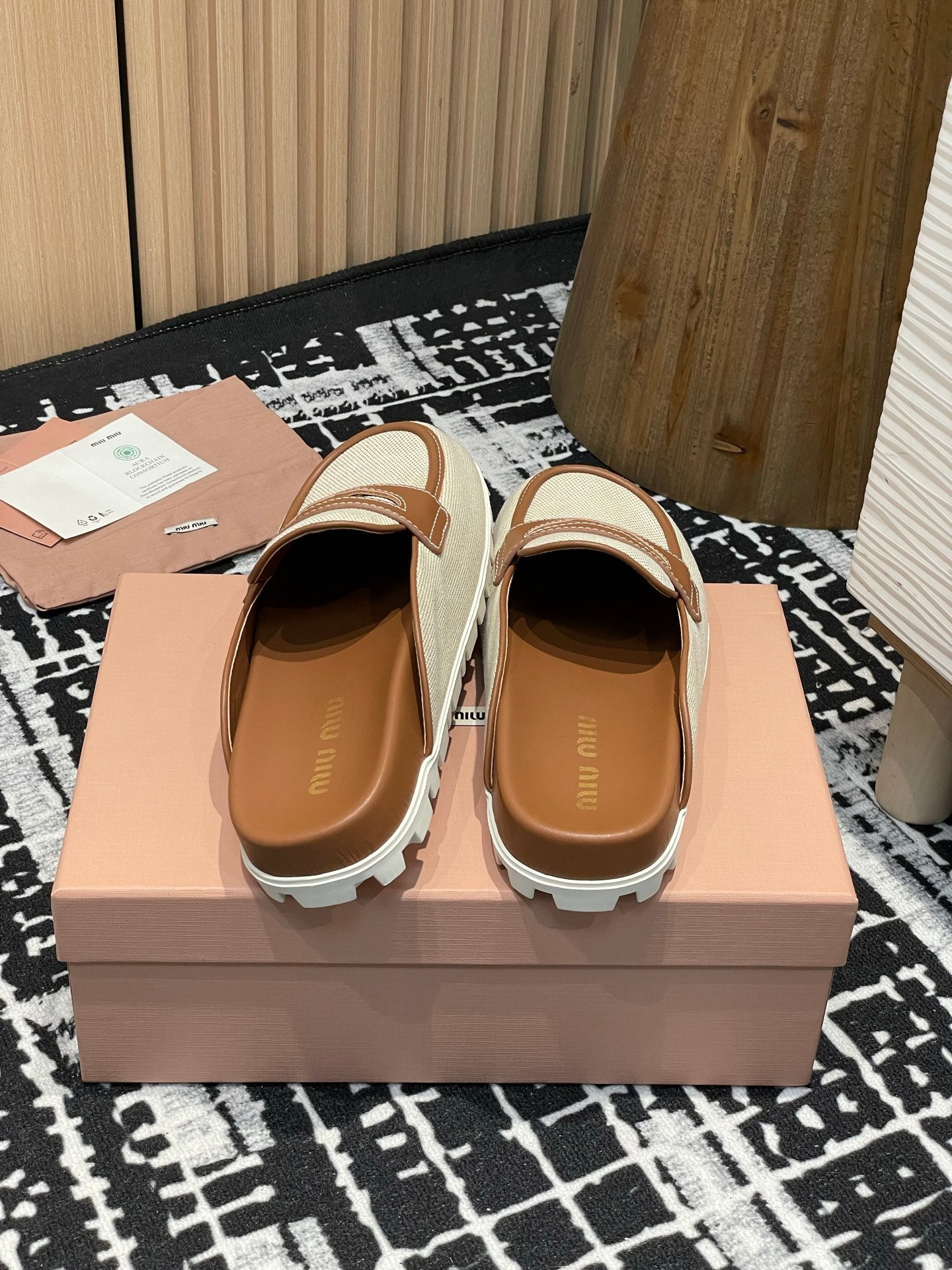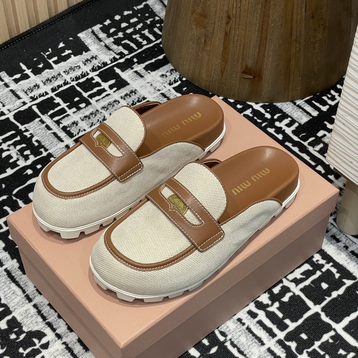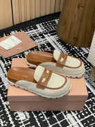 Miu 25S Beige and Brandy Canvas and leather Mules 227138