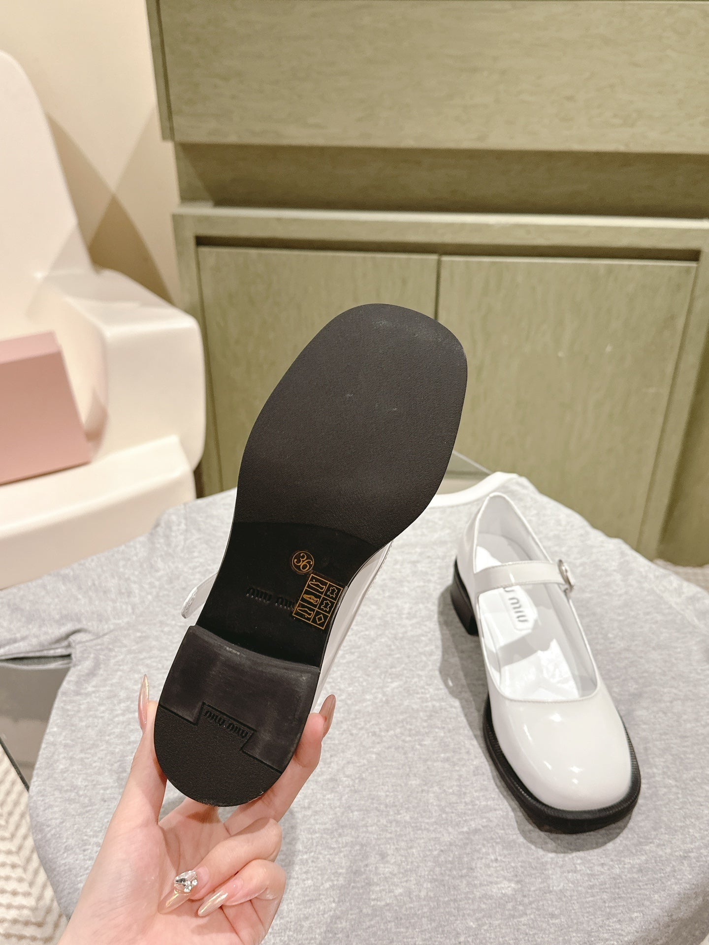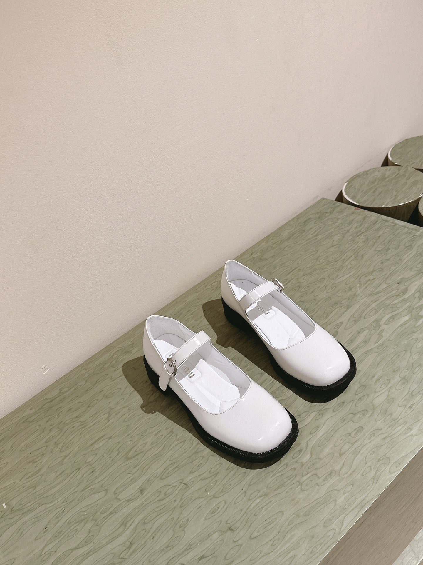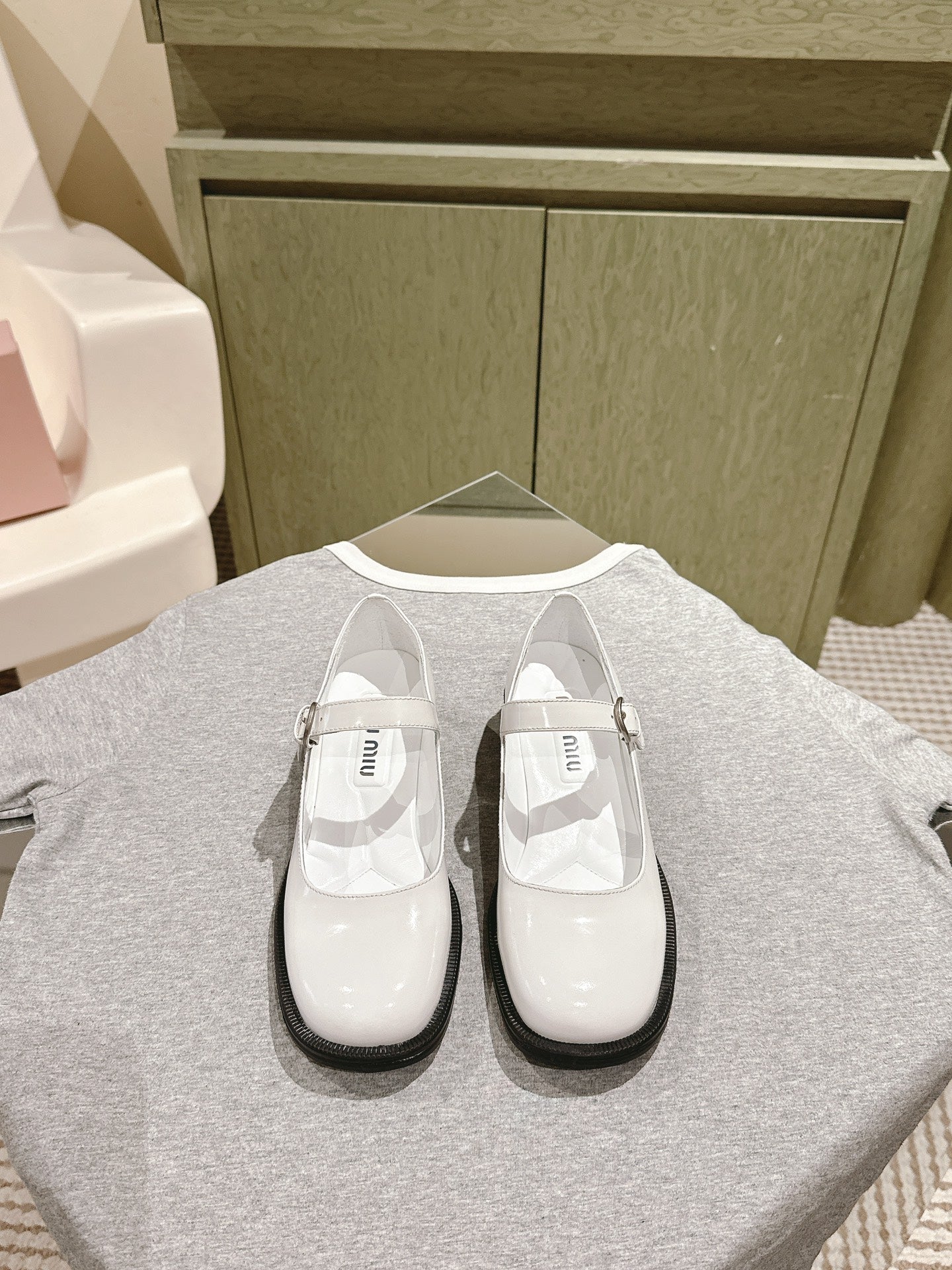 Miu Mary Jane Shoes White Patent Leather 445566