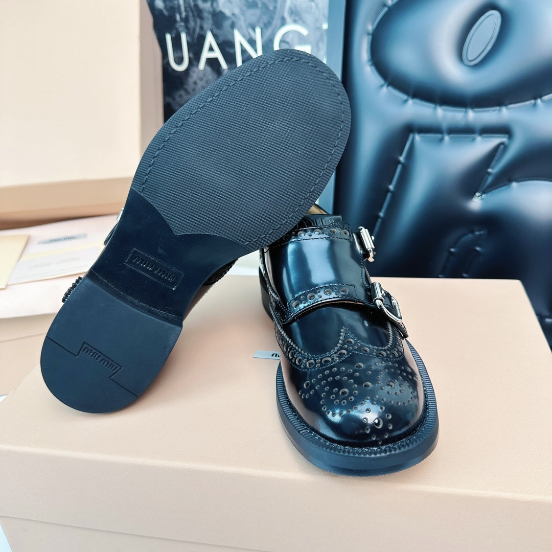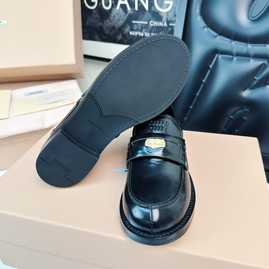 Miu Loafers Coin Shaped Thick Sole Glossy Black Cowhide