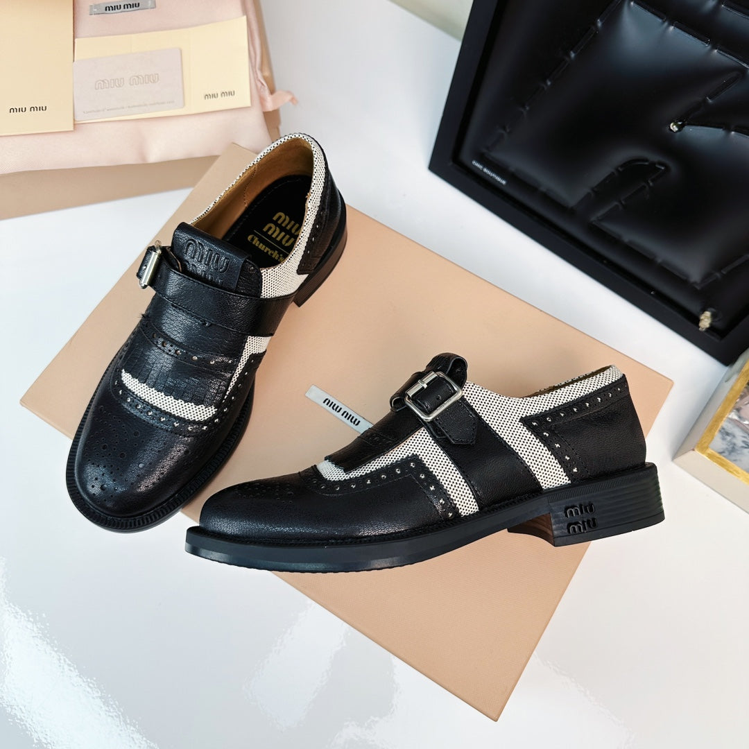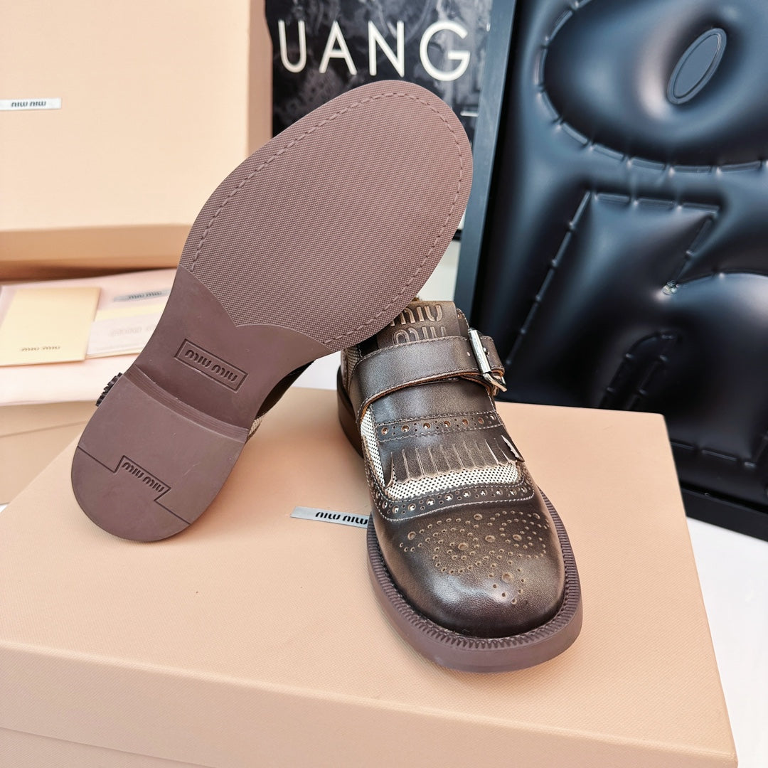 Miu Loafers Coin Shaped Thick Sole White With Brown Border Cowhide