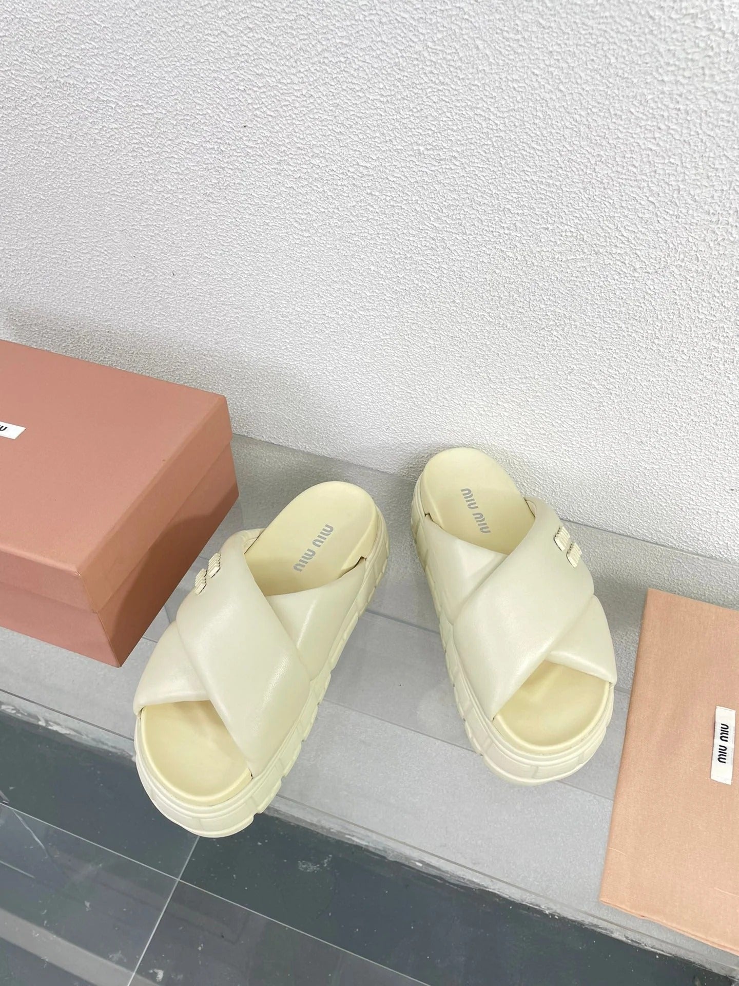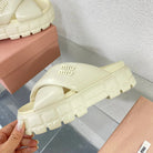 Cross Thick-Soled Light Cream Slippers