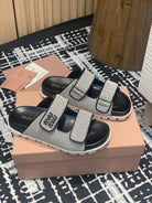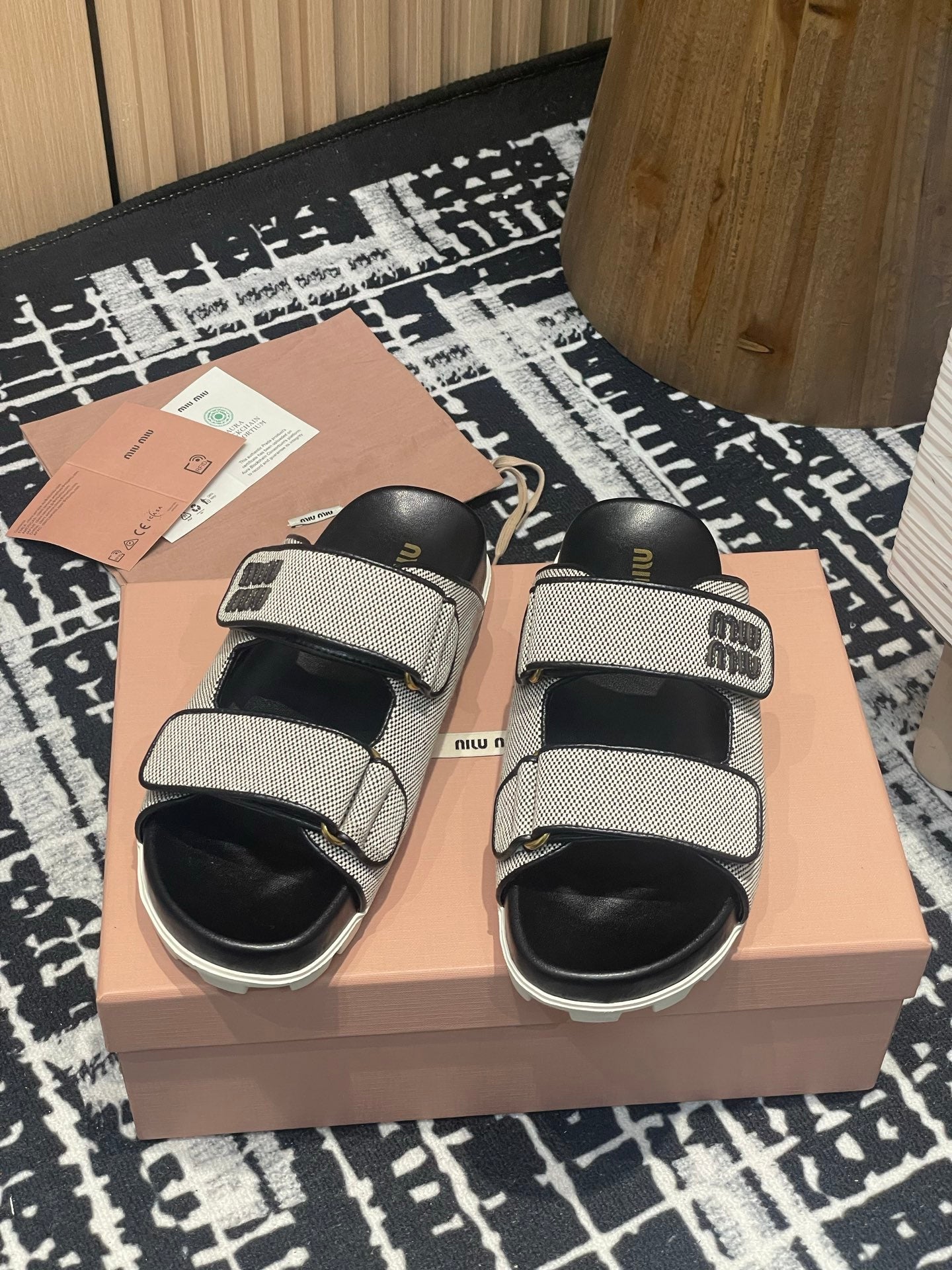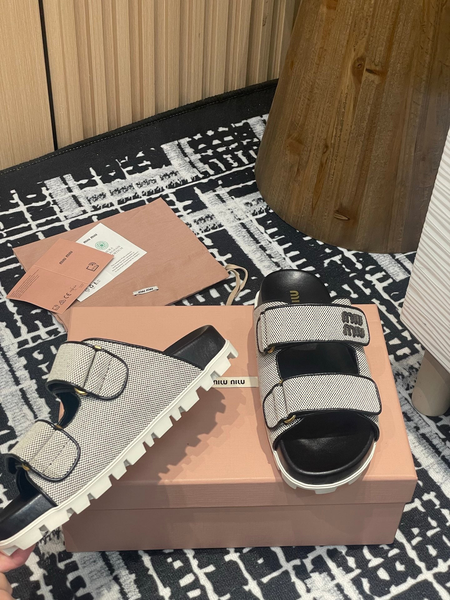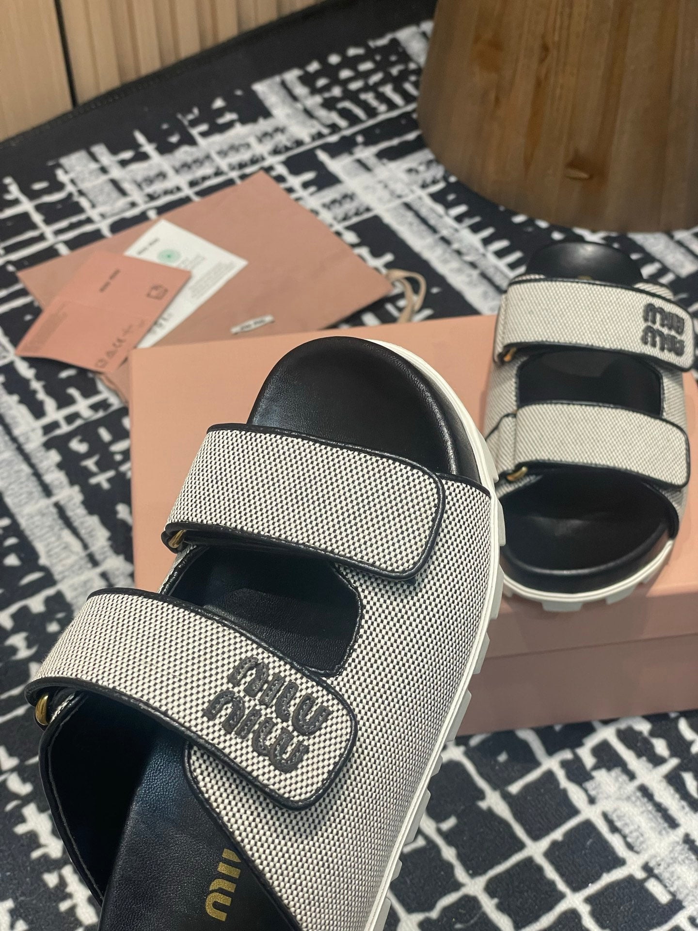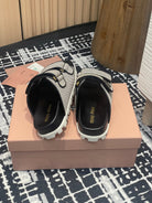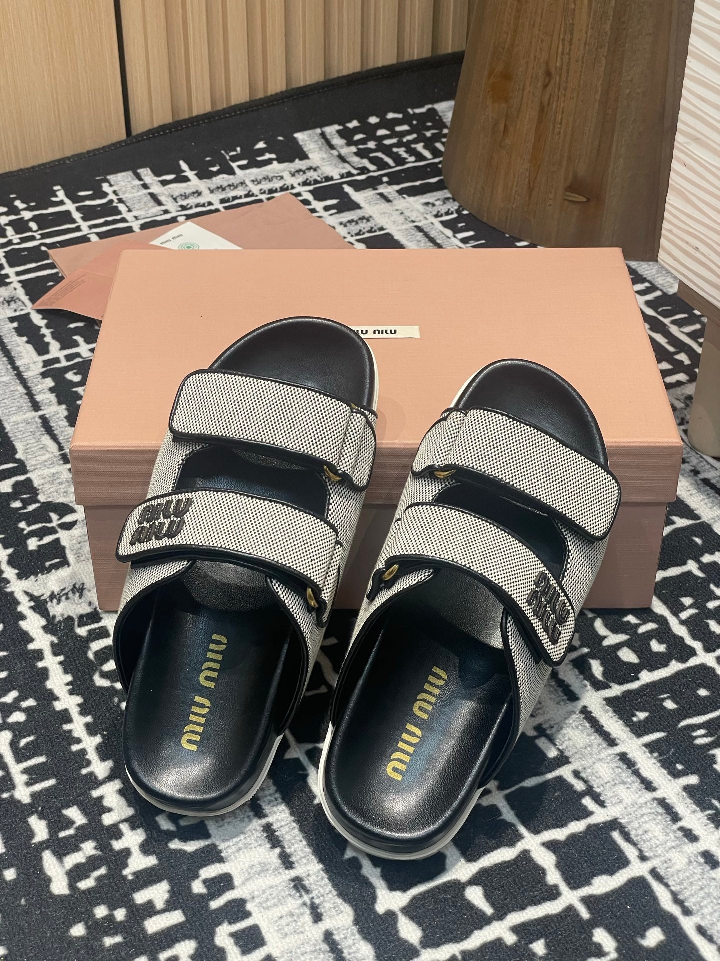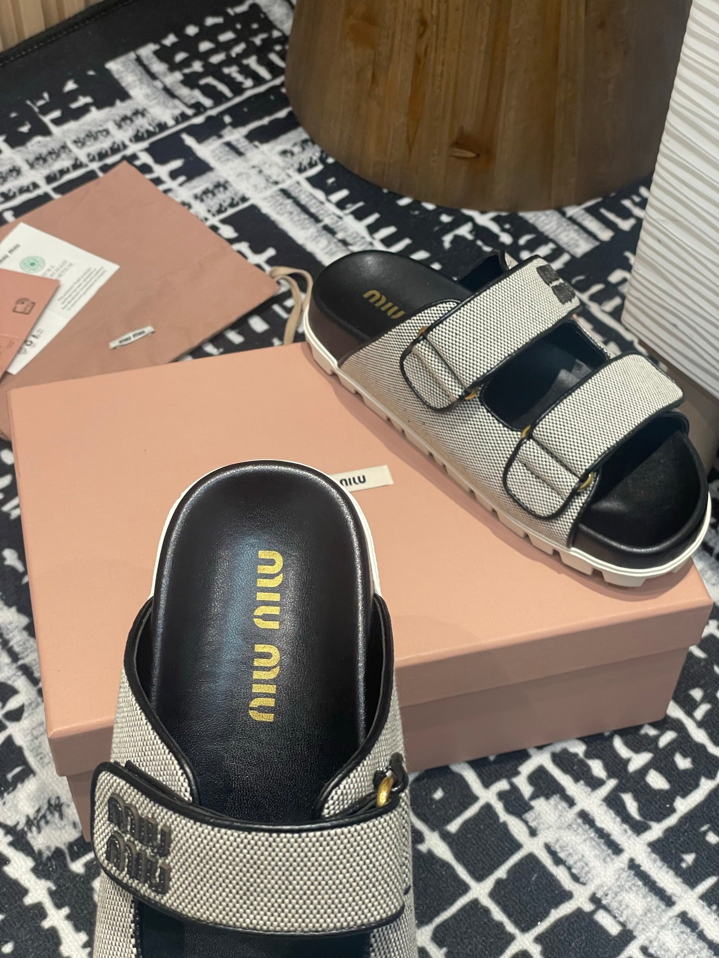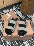 Miu 25S Beige and Black Canvas slides 227135