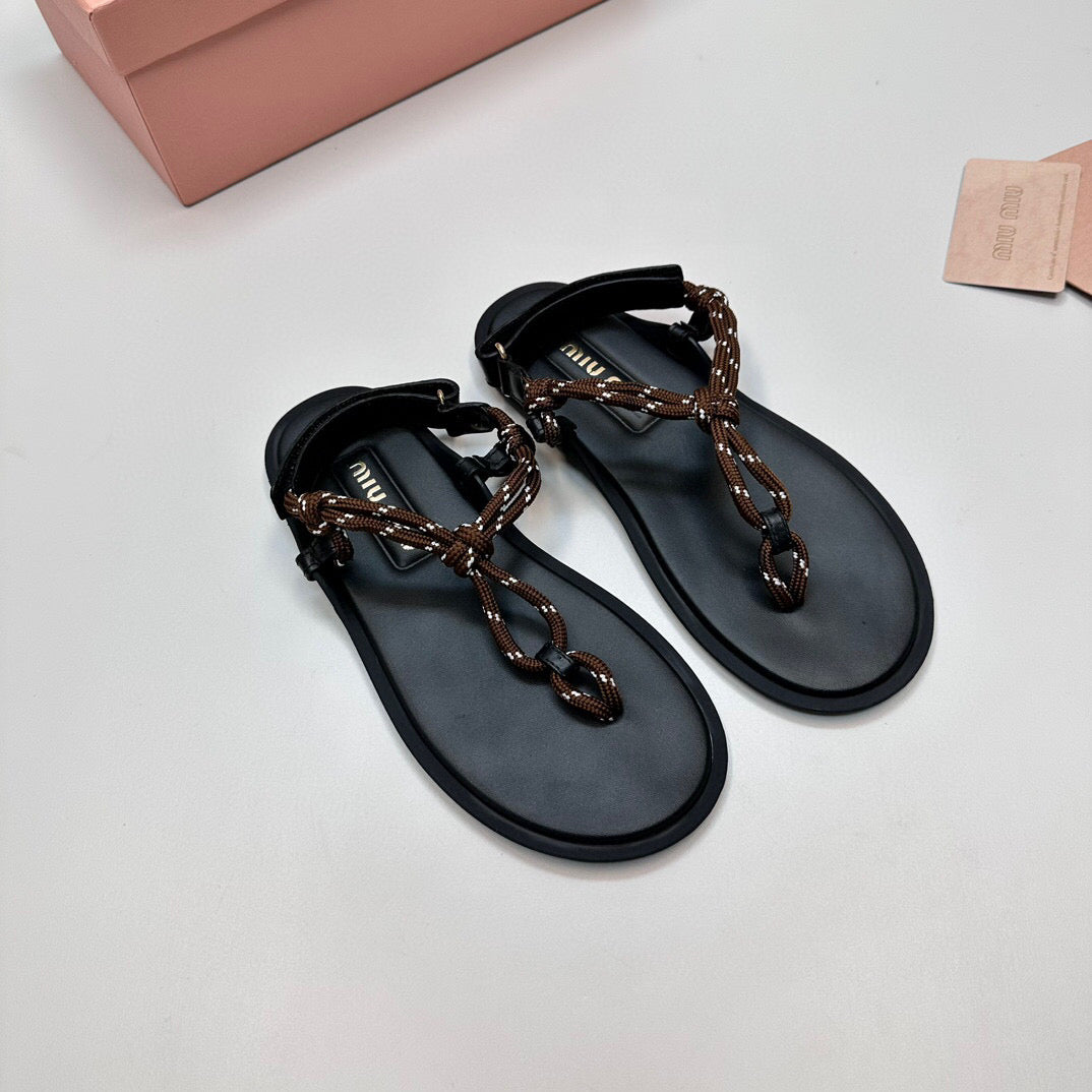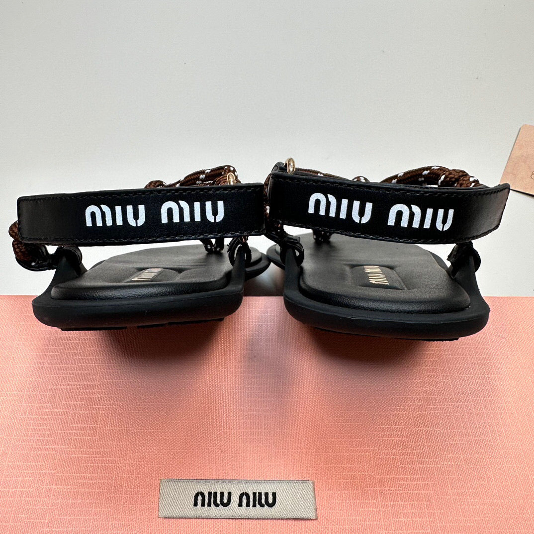 Miu 25S Beige and Black Canvas and leather slides 227133