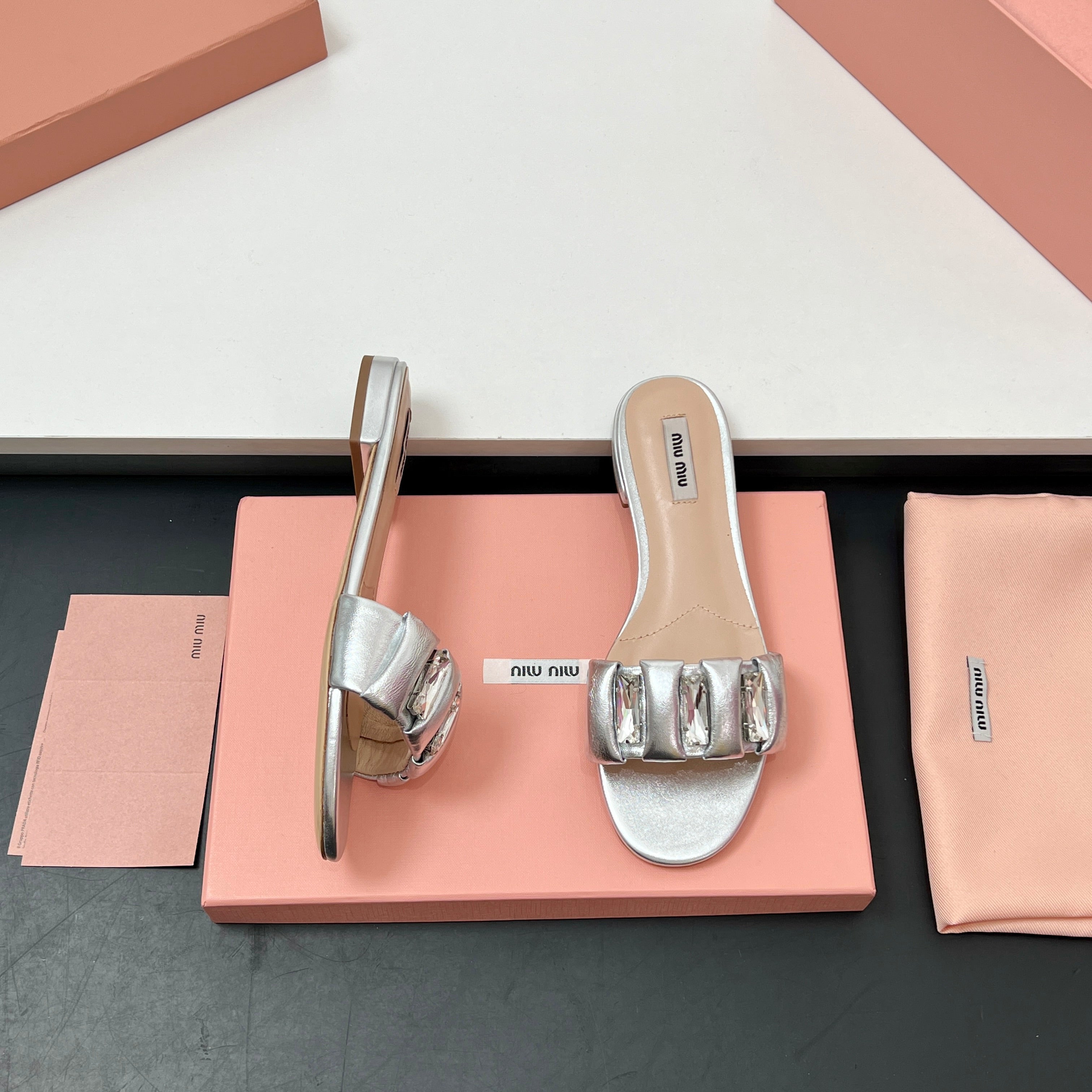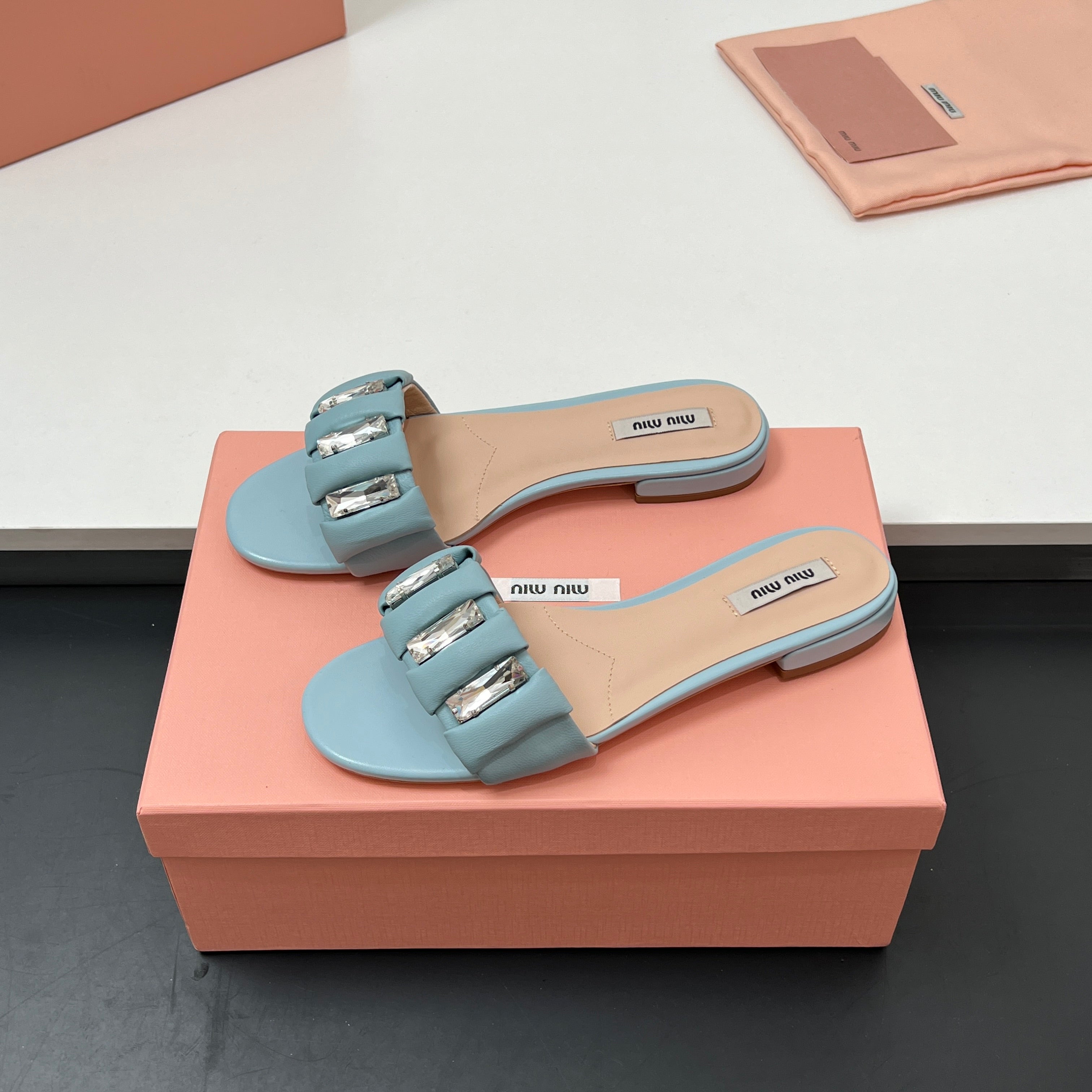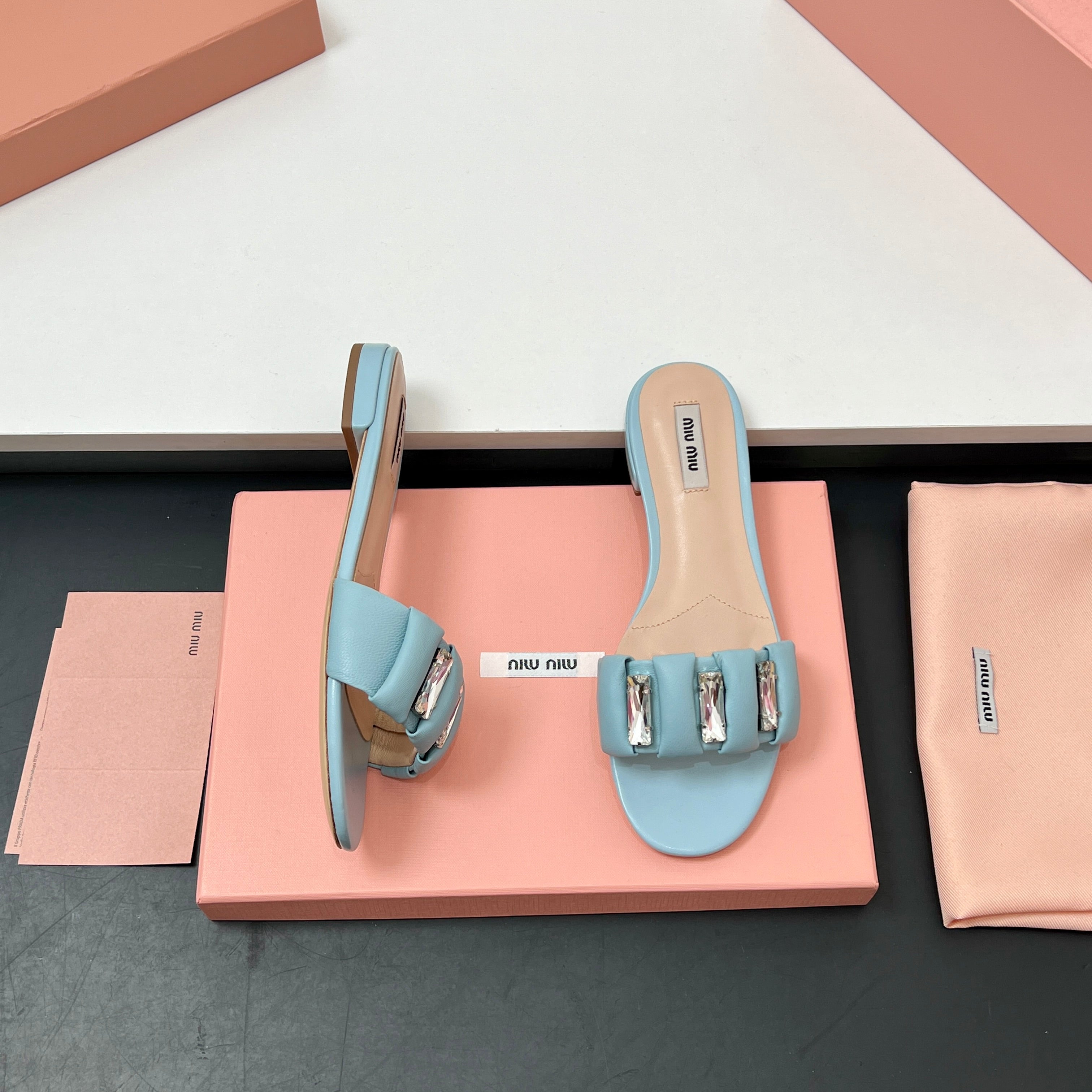 Miu 10mm Slipper with diamonds tiffany blue leather 223452