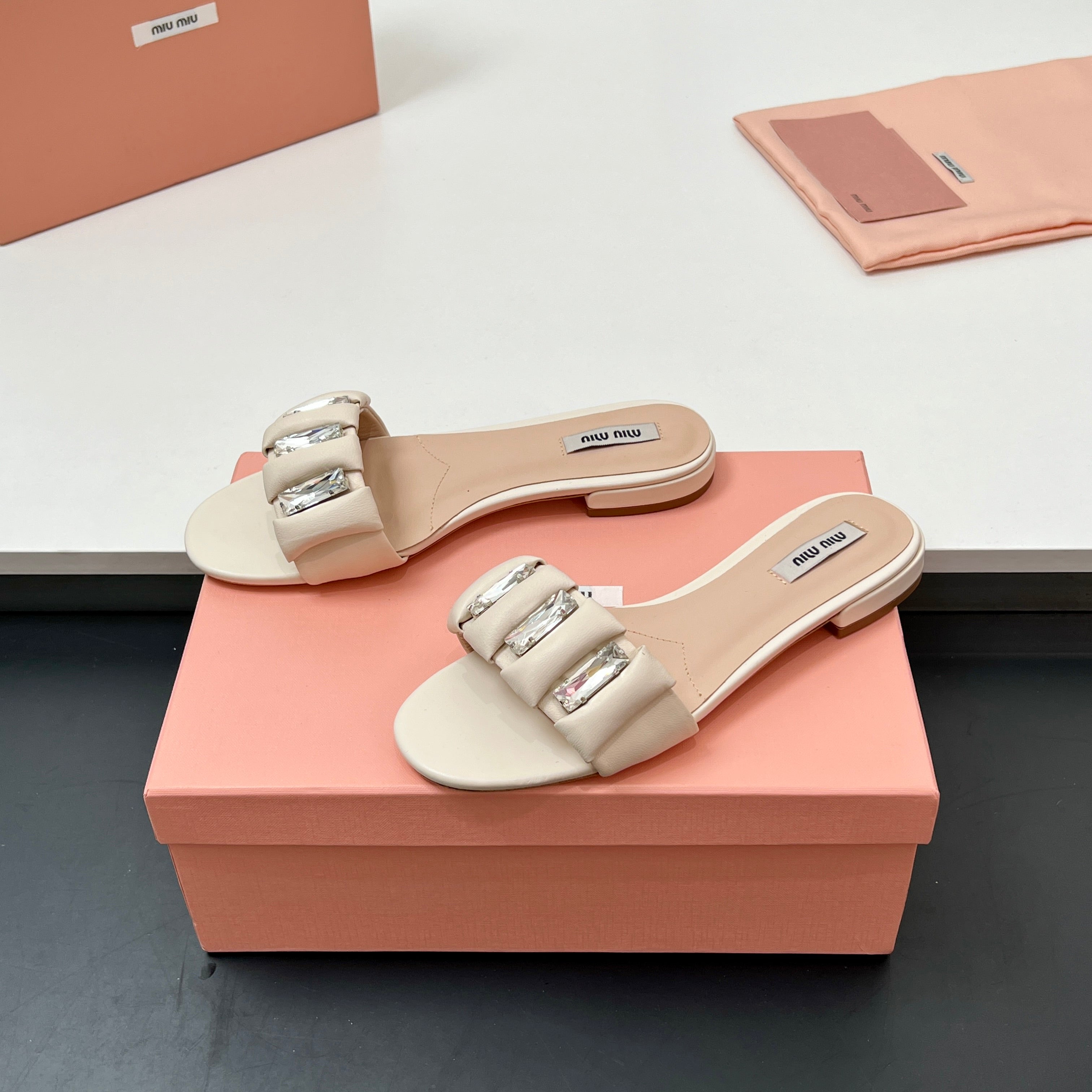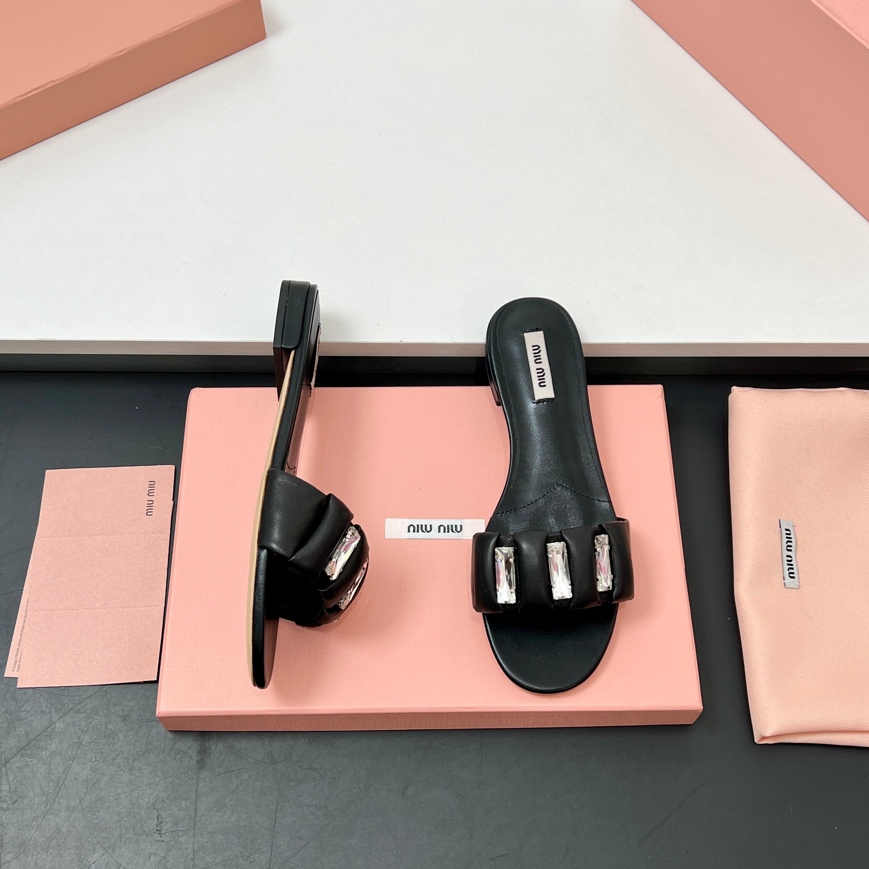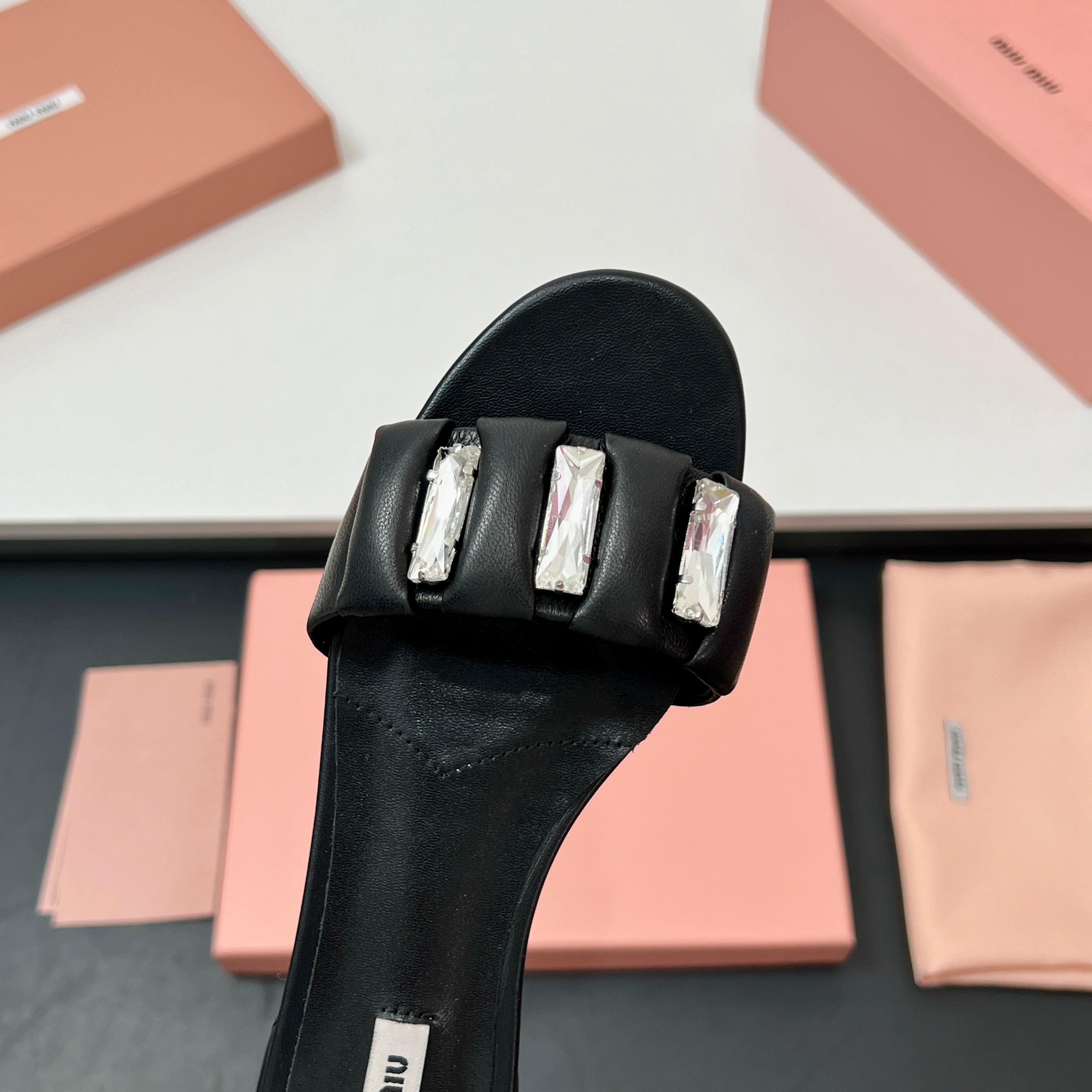 Miu 10mm Slipper with diamonds tiffany blue leather 223452