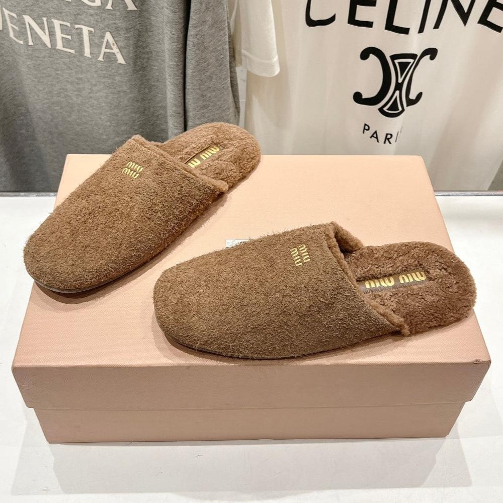 Miu Slippers Dark Chocolate Brown Imported Sheepskin