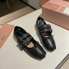 BALLET FLAT SHOES BLACK LAMBSKIN WITH UNIQUE BLACK STRAPS