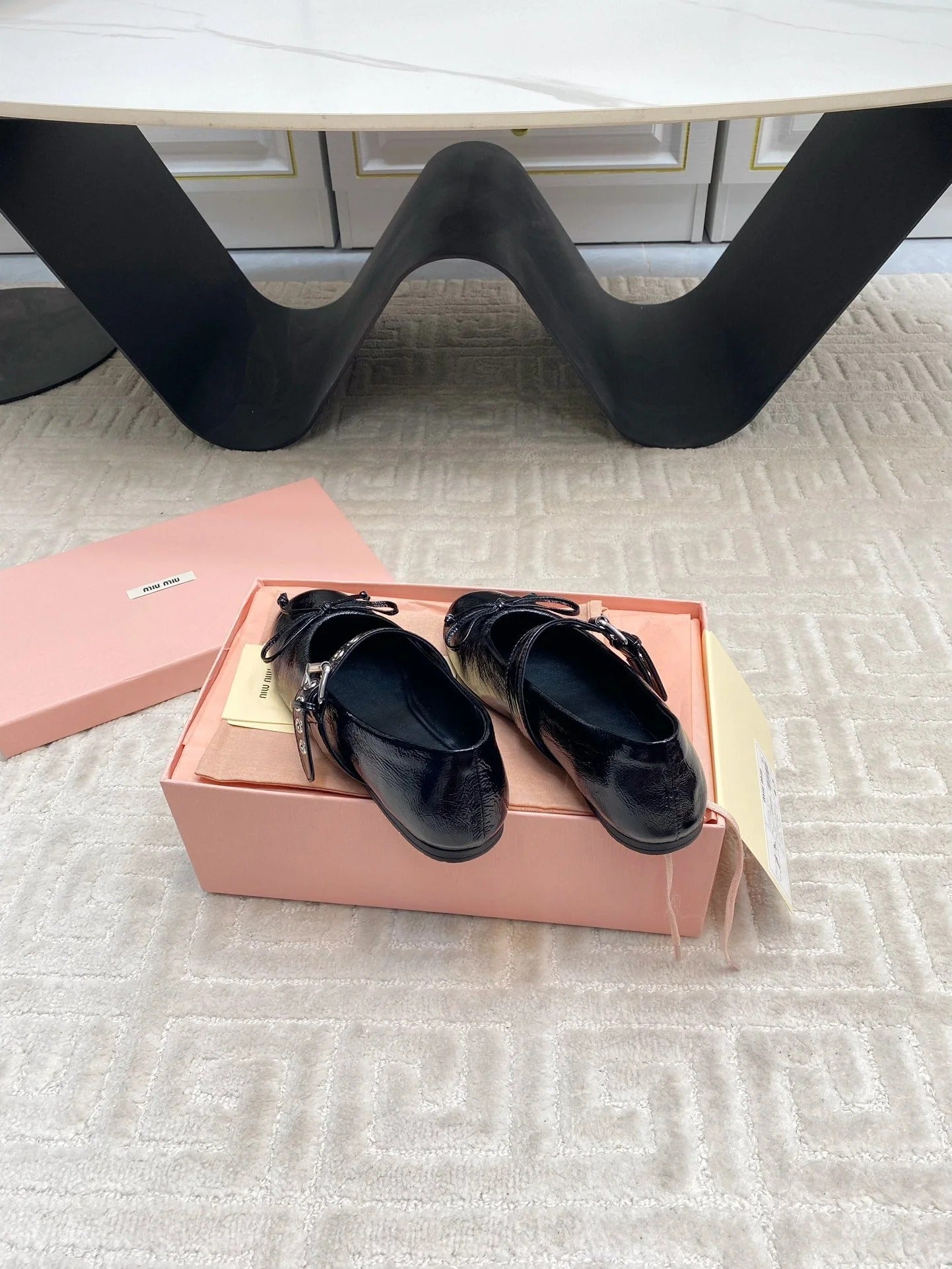 BOW MARY JANE FLAT IN BLACK NAPLAK LAMBSKIN