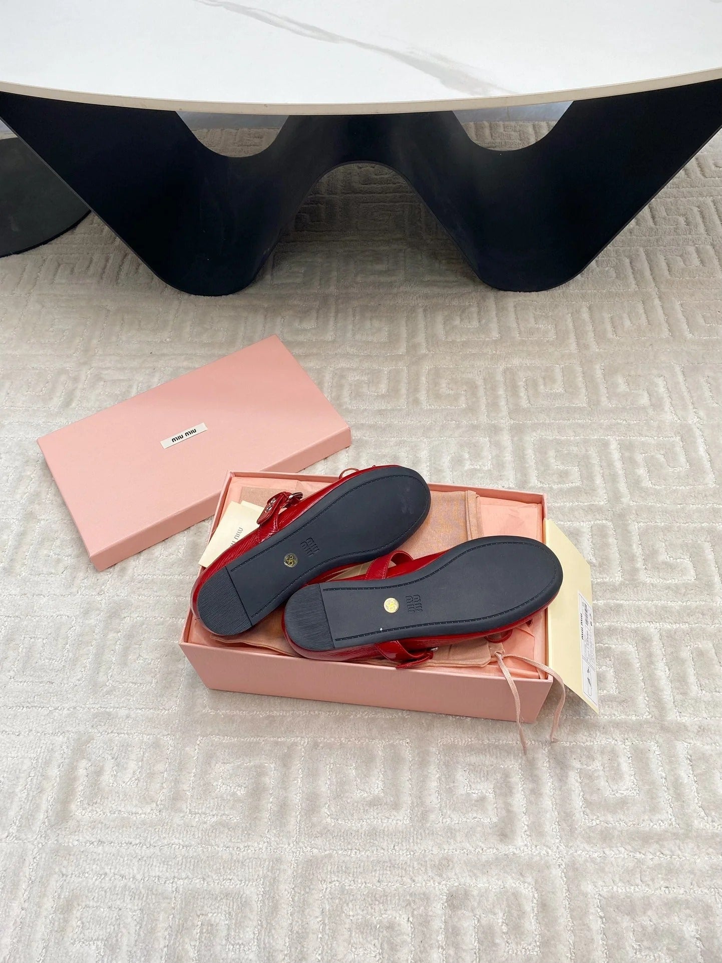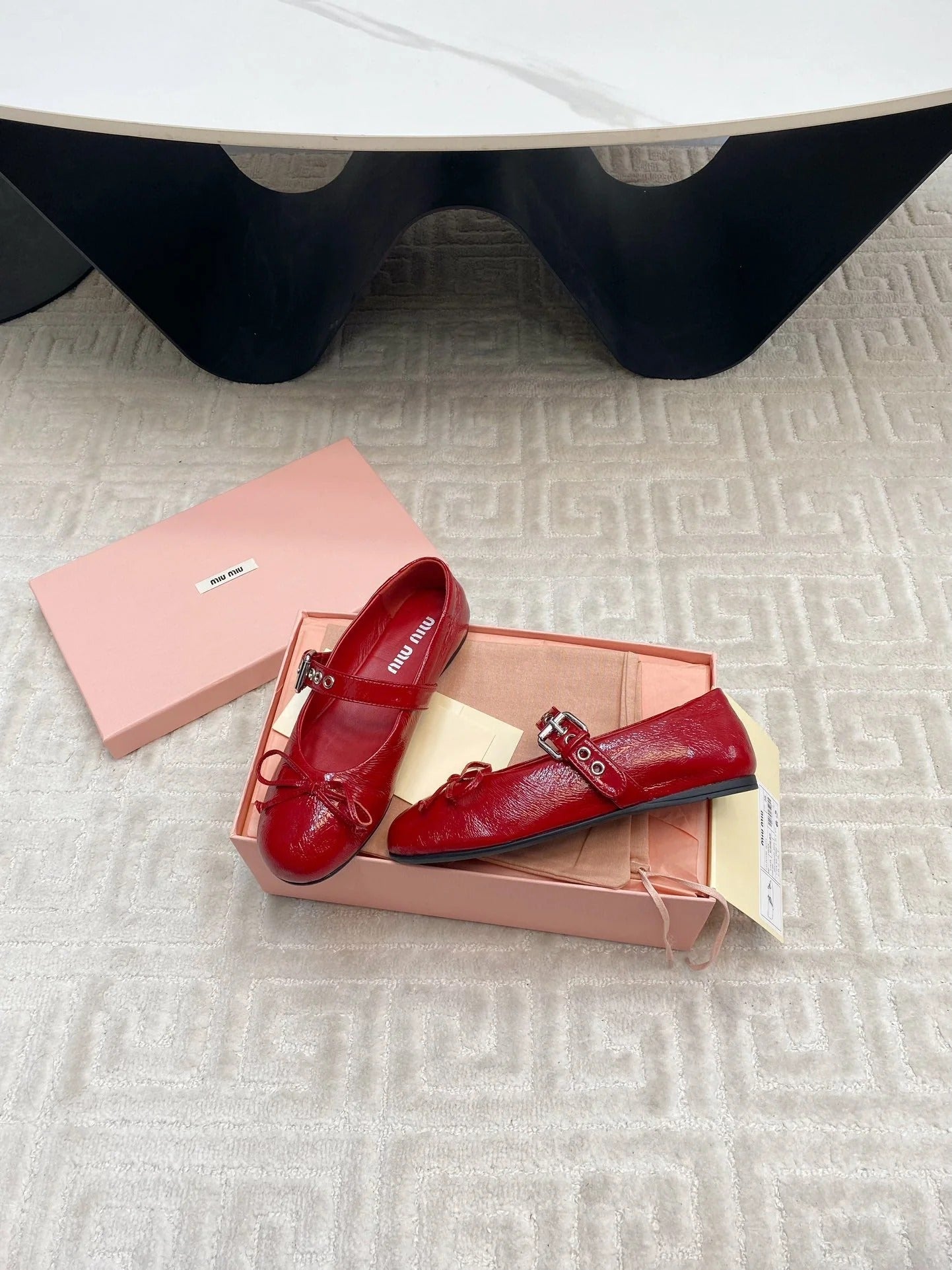 BOW MARY JANE FLAT IN RED NAPLAK LAMBSKIN