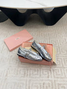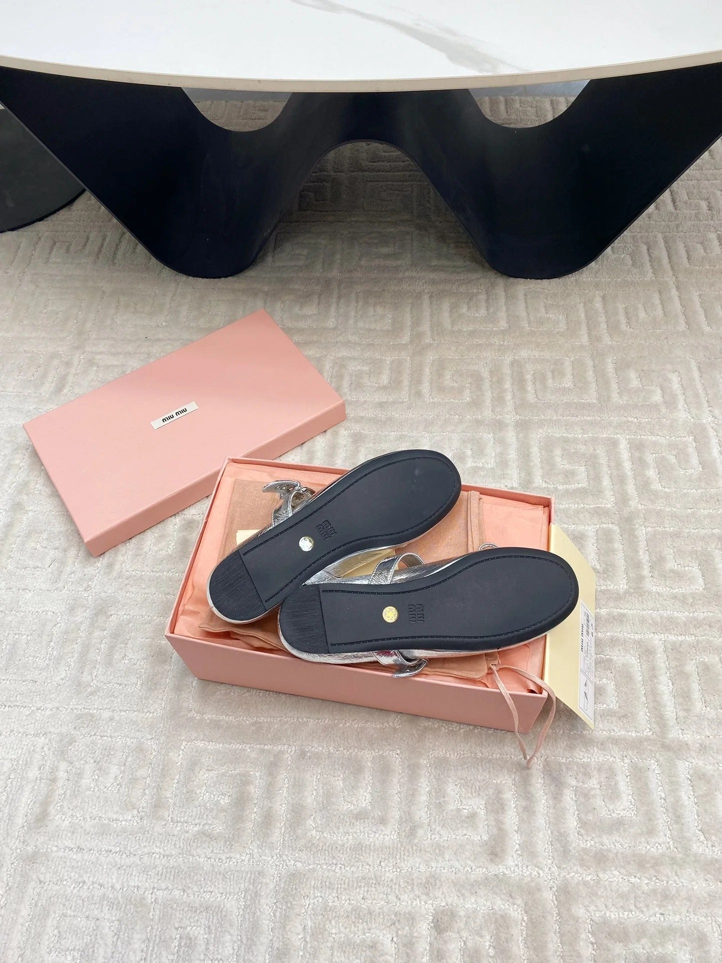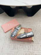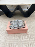 BOW MARY JANE FLAT IN SILVER LAMBSKIN