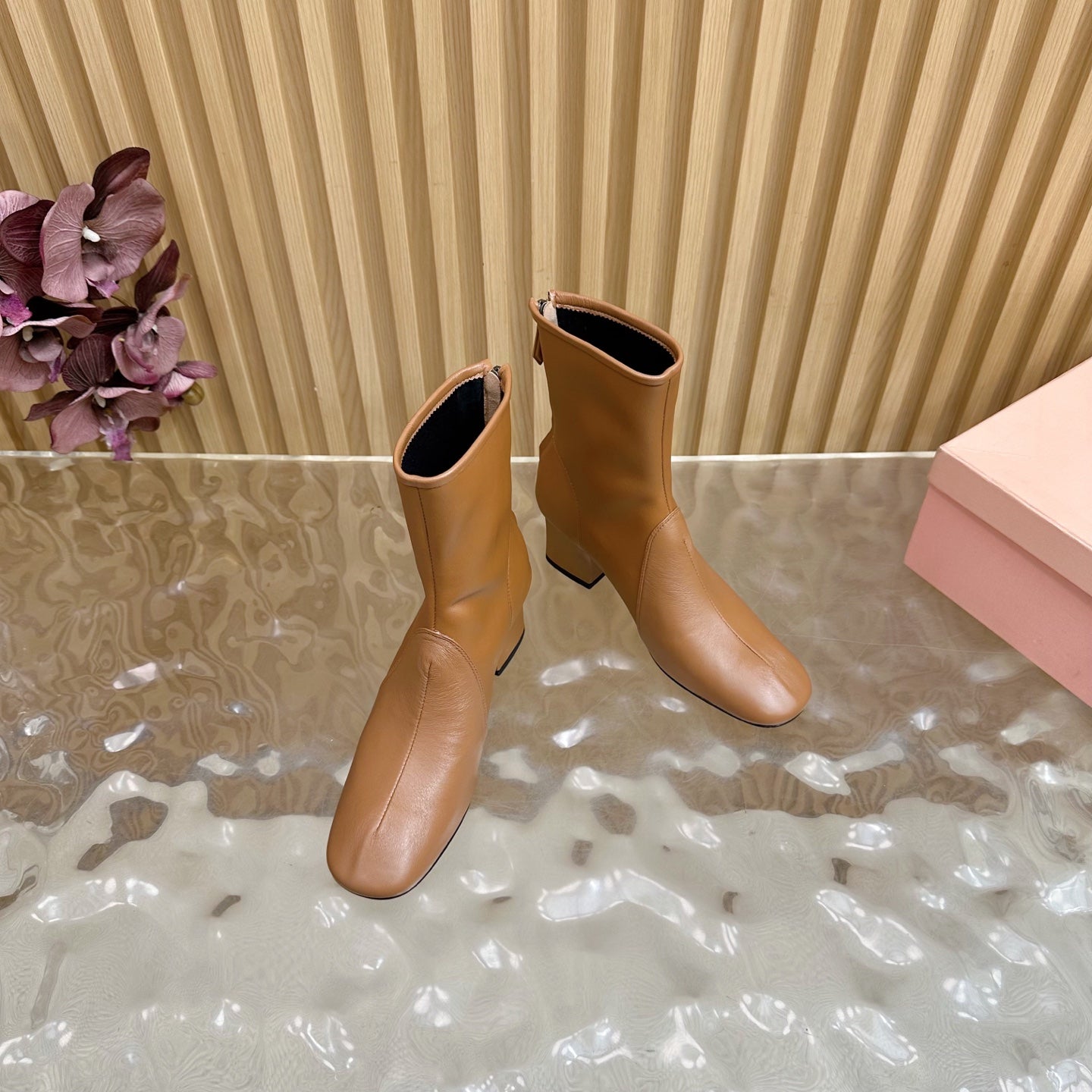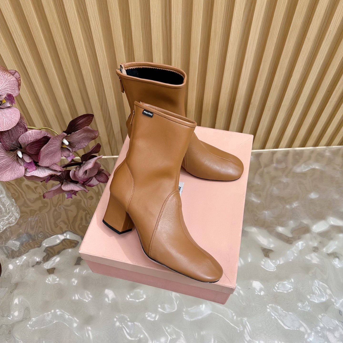 Miu Bootie Camel Nappa Leather 498179