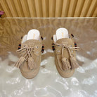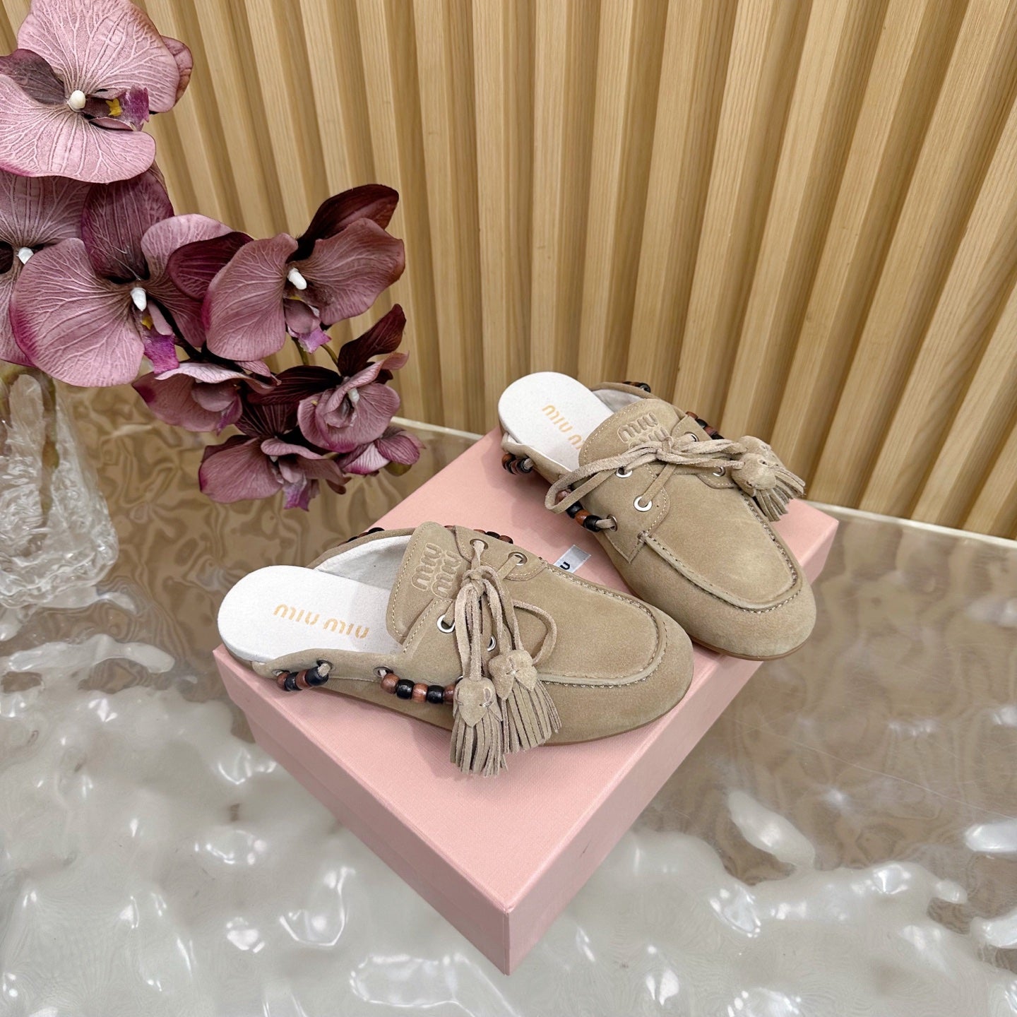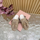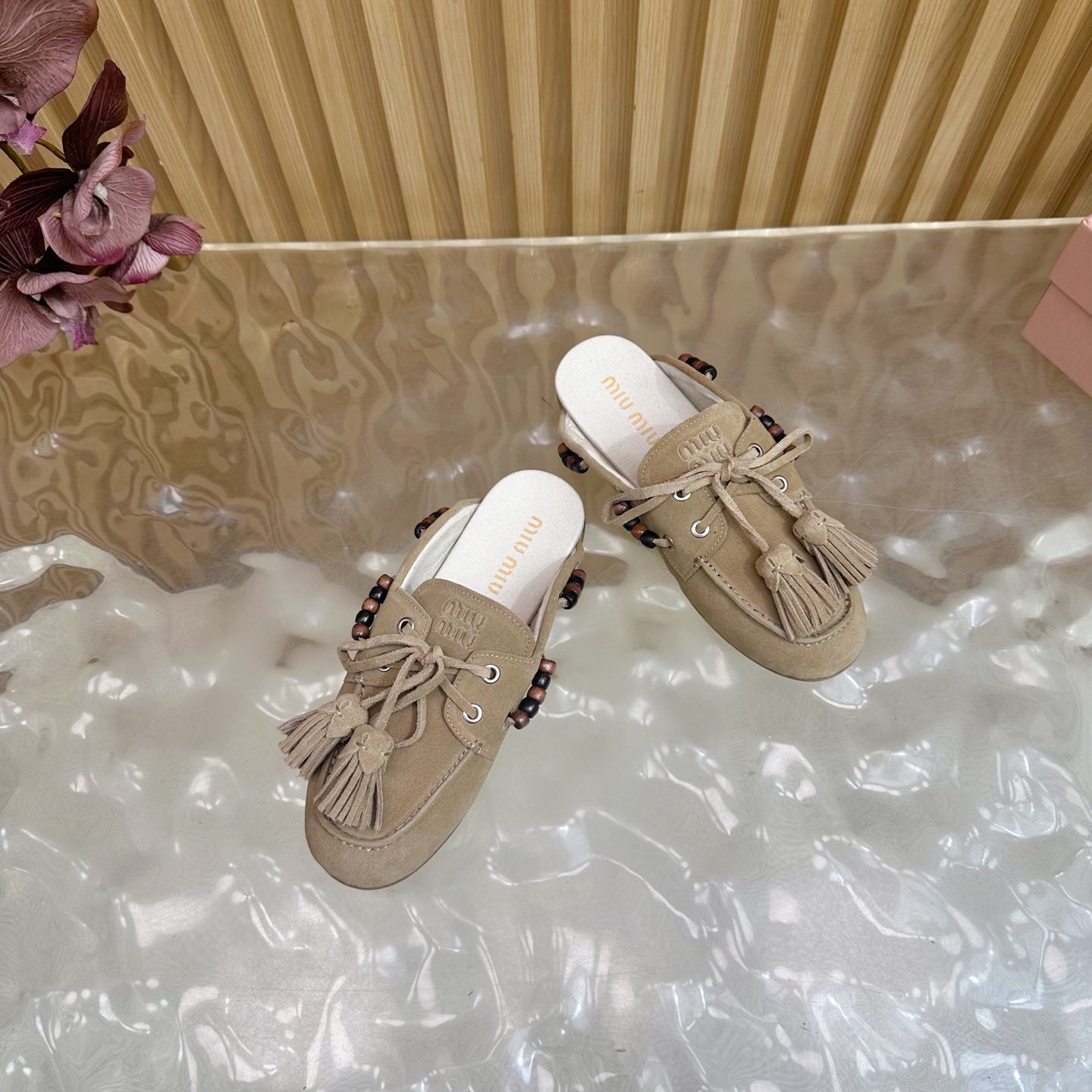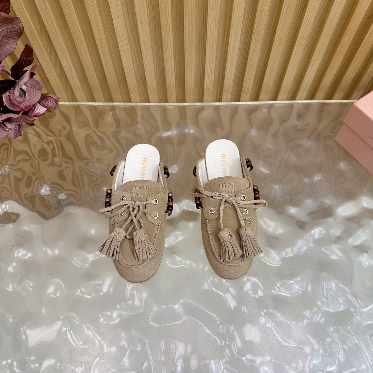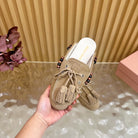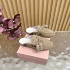 Miu Laces Eyelet Flat Half Slipper Beige Suede 498161