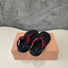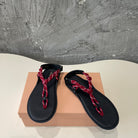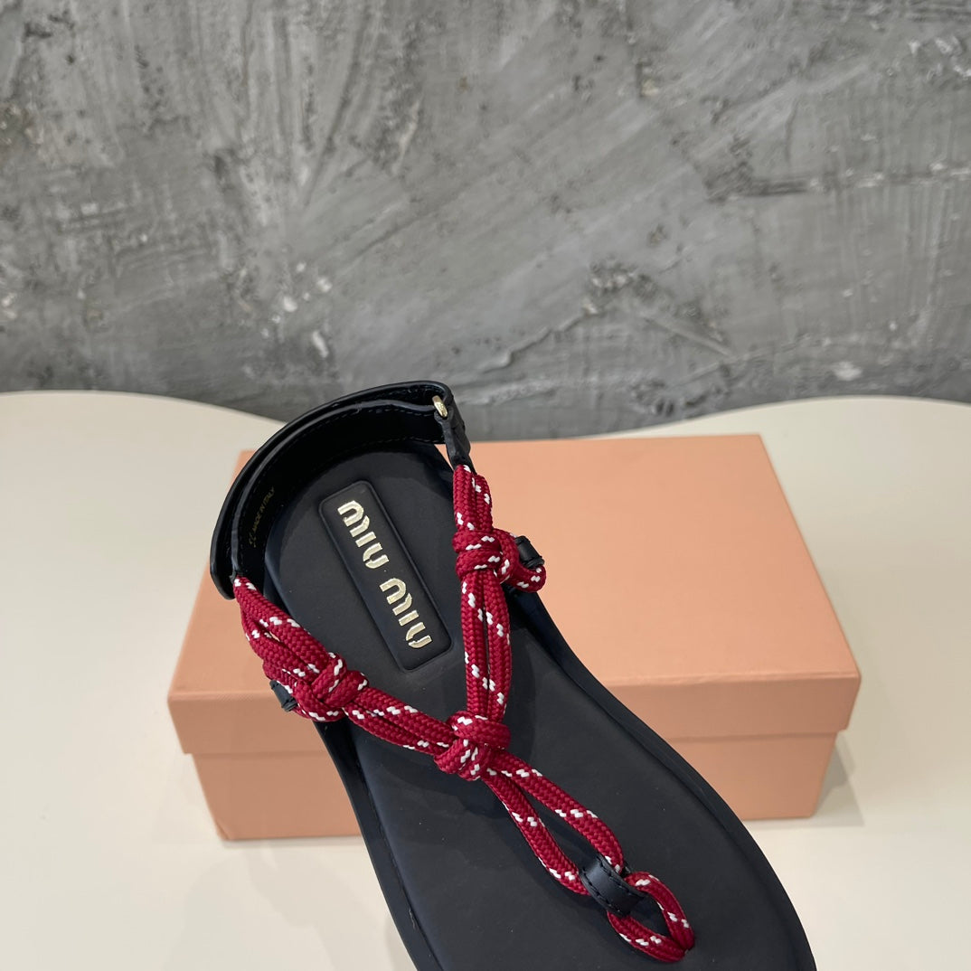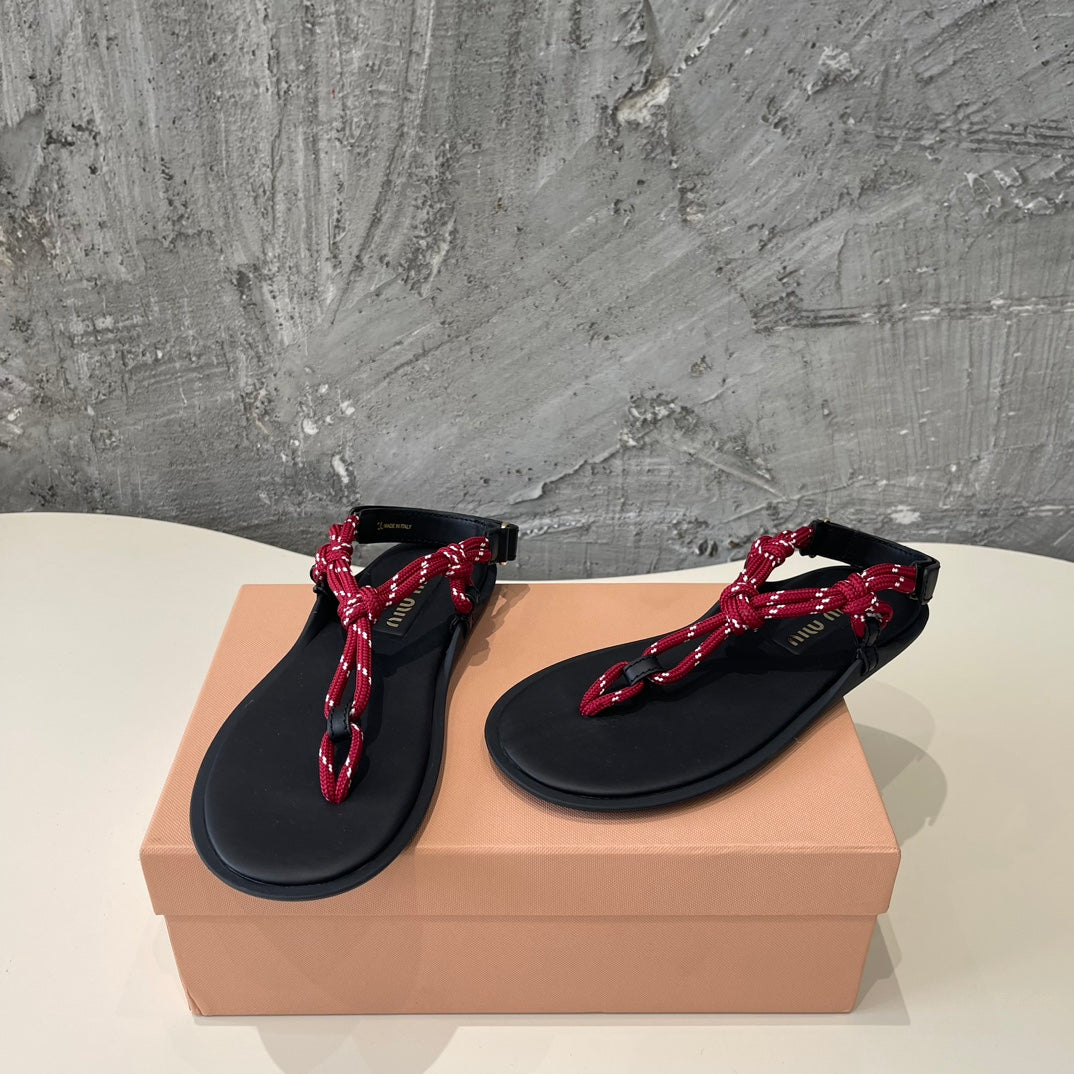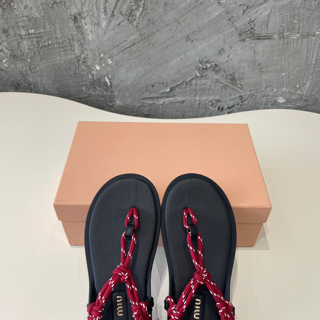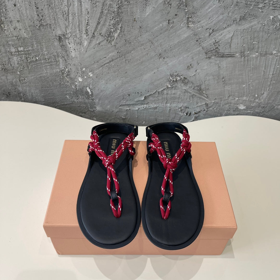 Miu Miu Cord-Strap Sandals Wine Black Cowhide With Custom Rope 577015