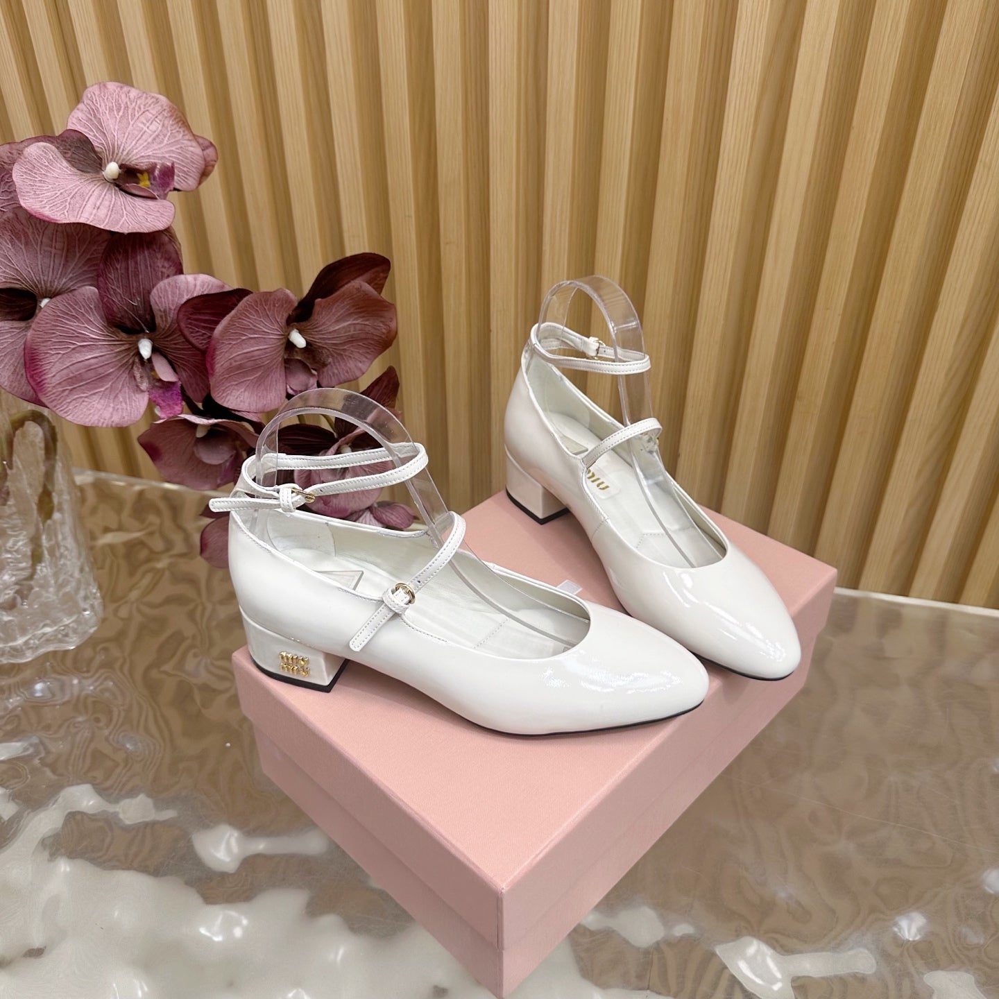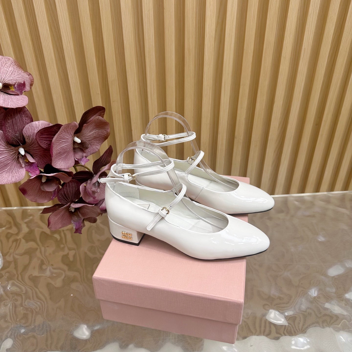 Miu Slingback Pumps With Straps White Patent Leather 498171