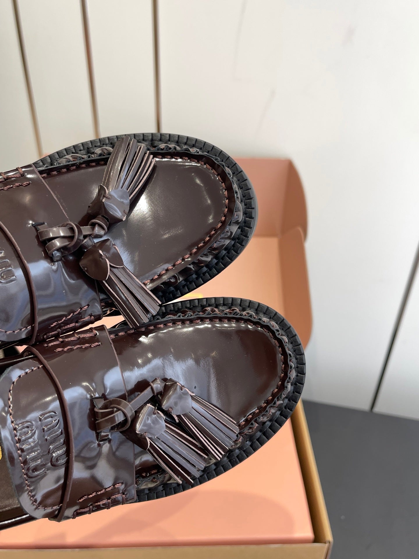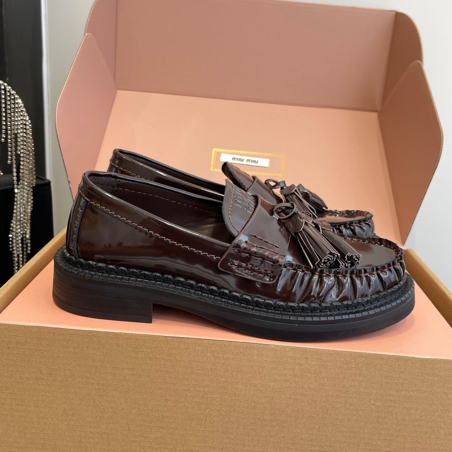 Miu Tassel Loafers Dark Brownish Polished Leather 490952
