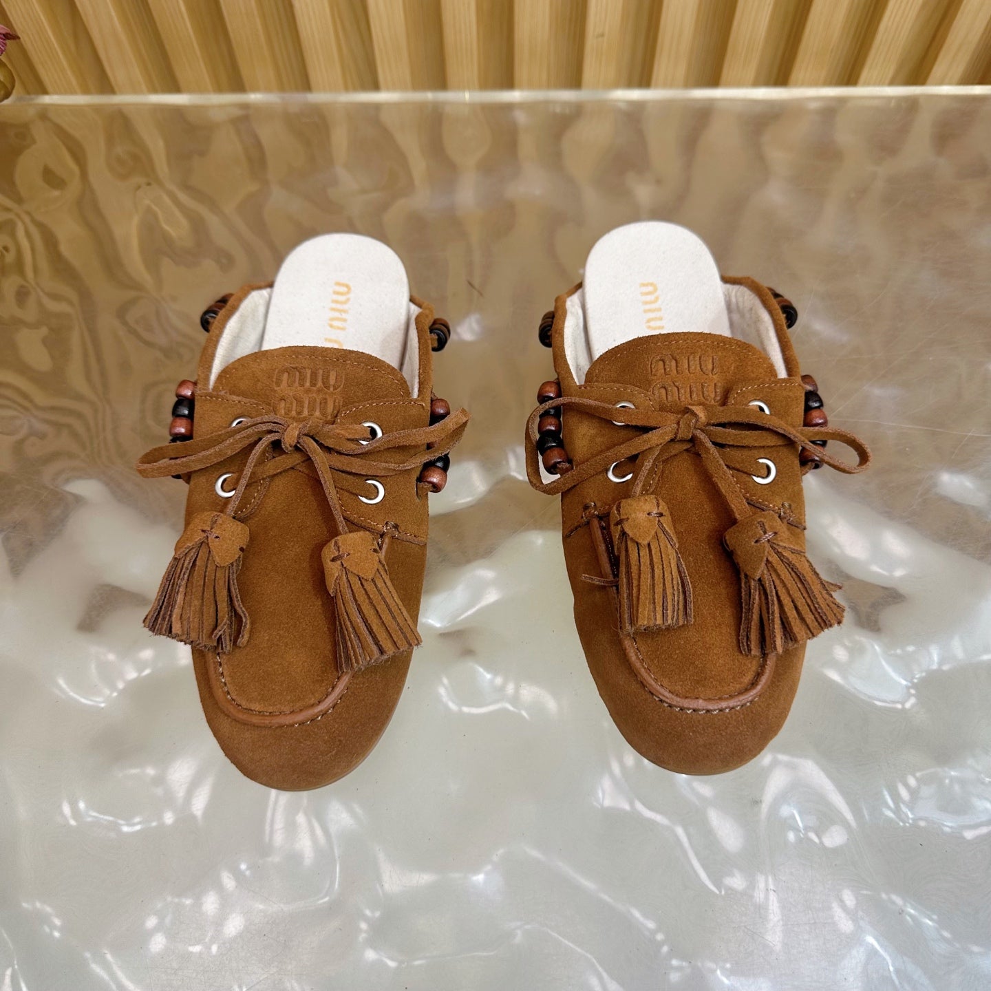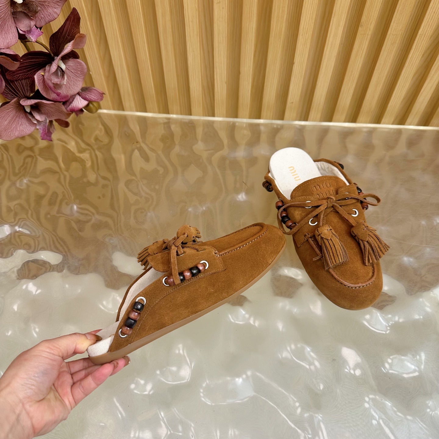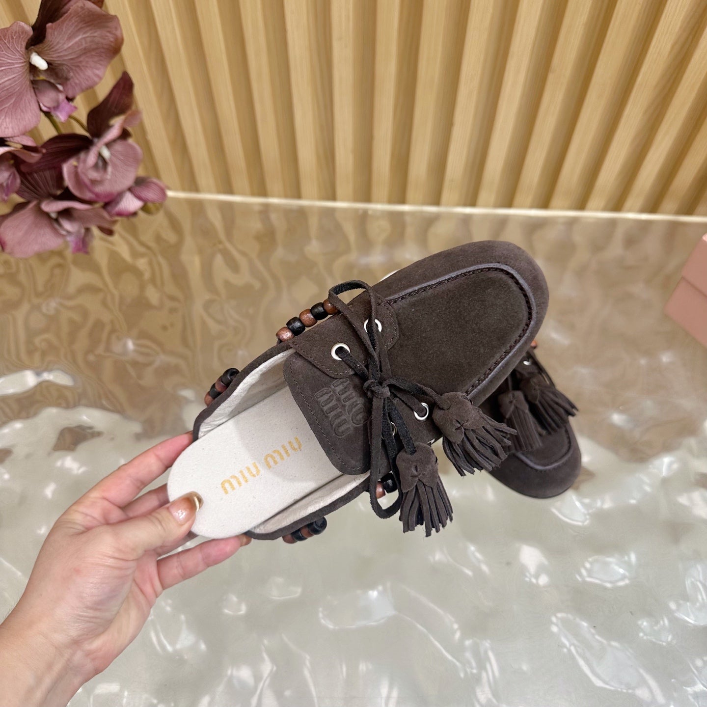 Miu Laces Eyelet Flat Half Slipper Dark Brown Suede 498163