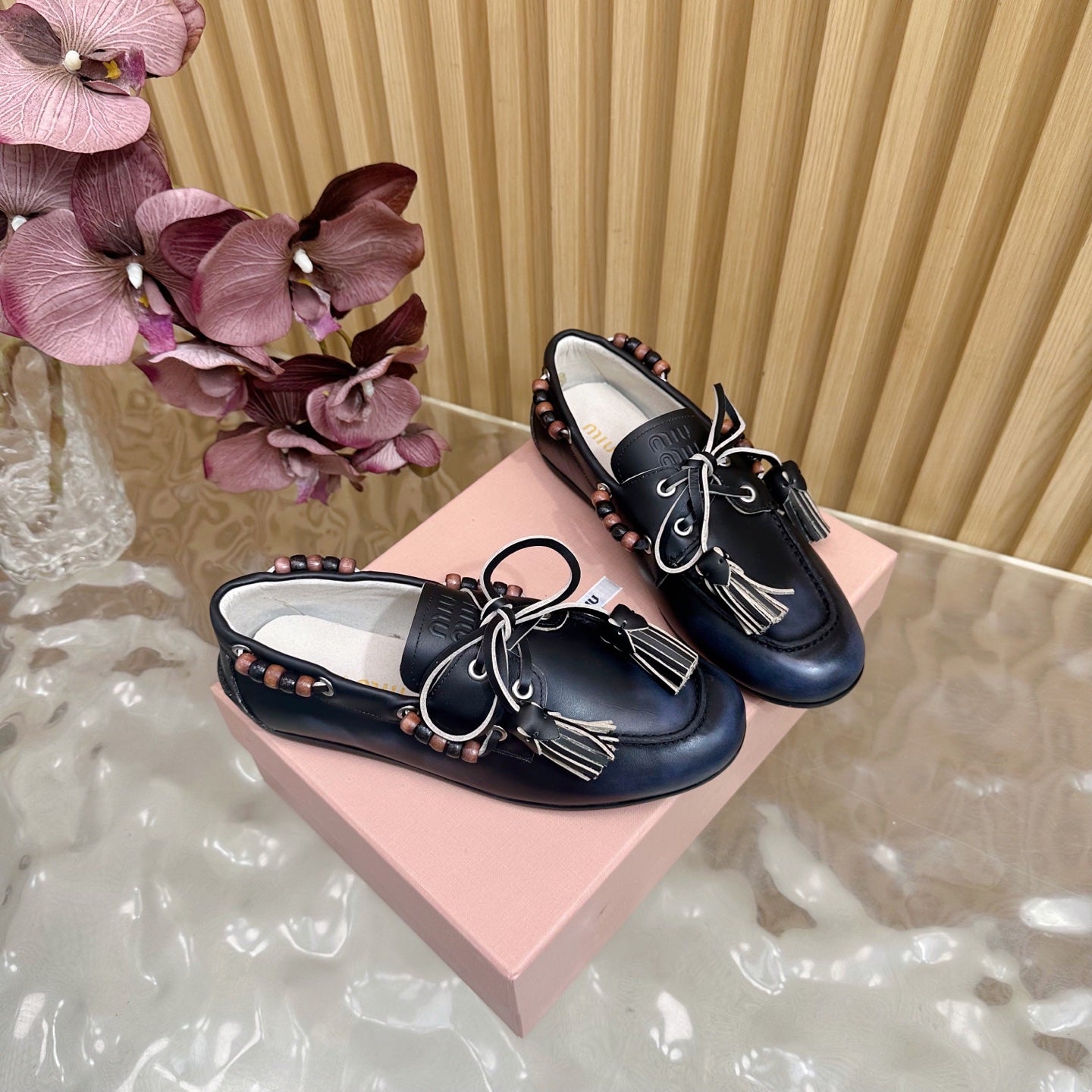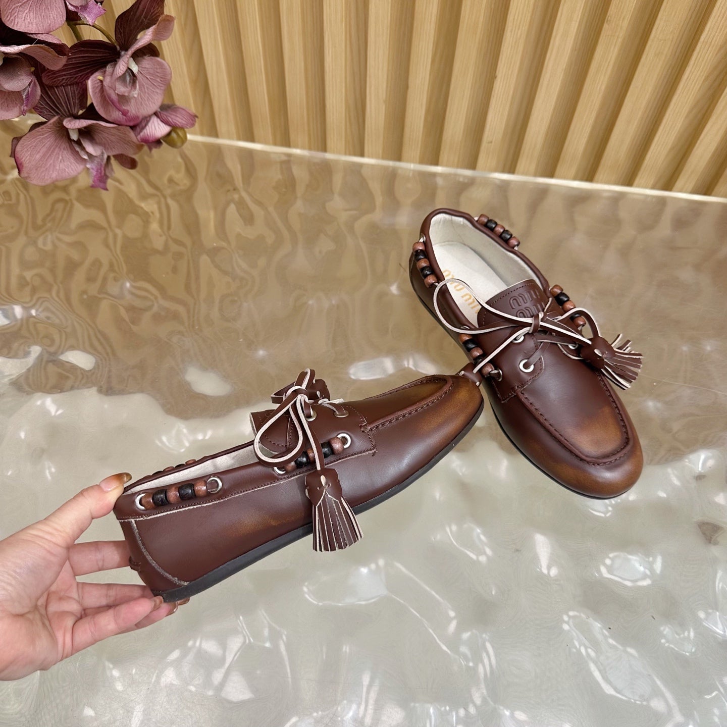 Miu Tassel Loafers Dark Brownish Polished Leather 490952