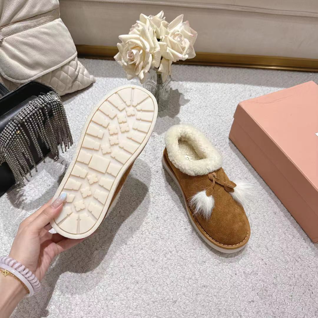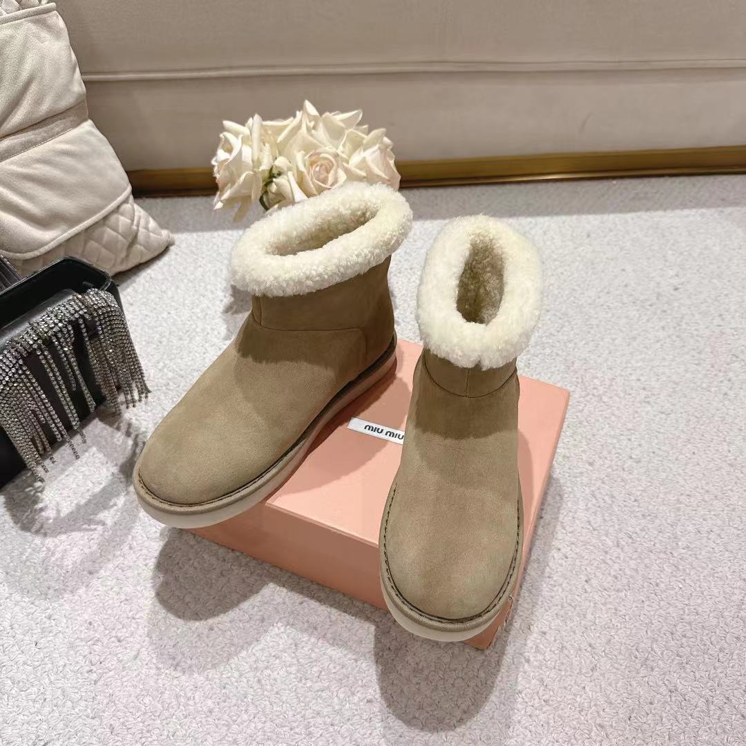 Miu Snow Boots Dark Brown Suede Shearling 455924