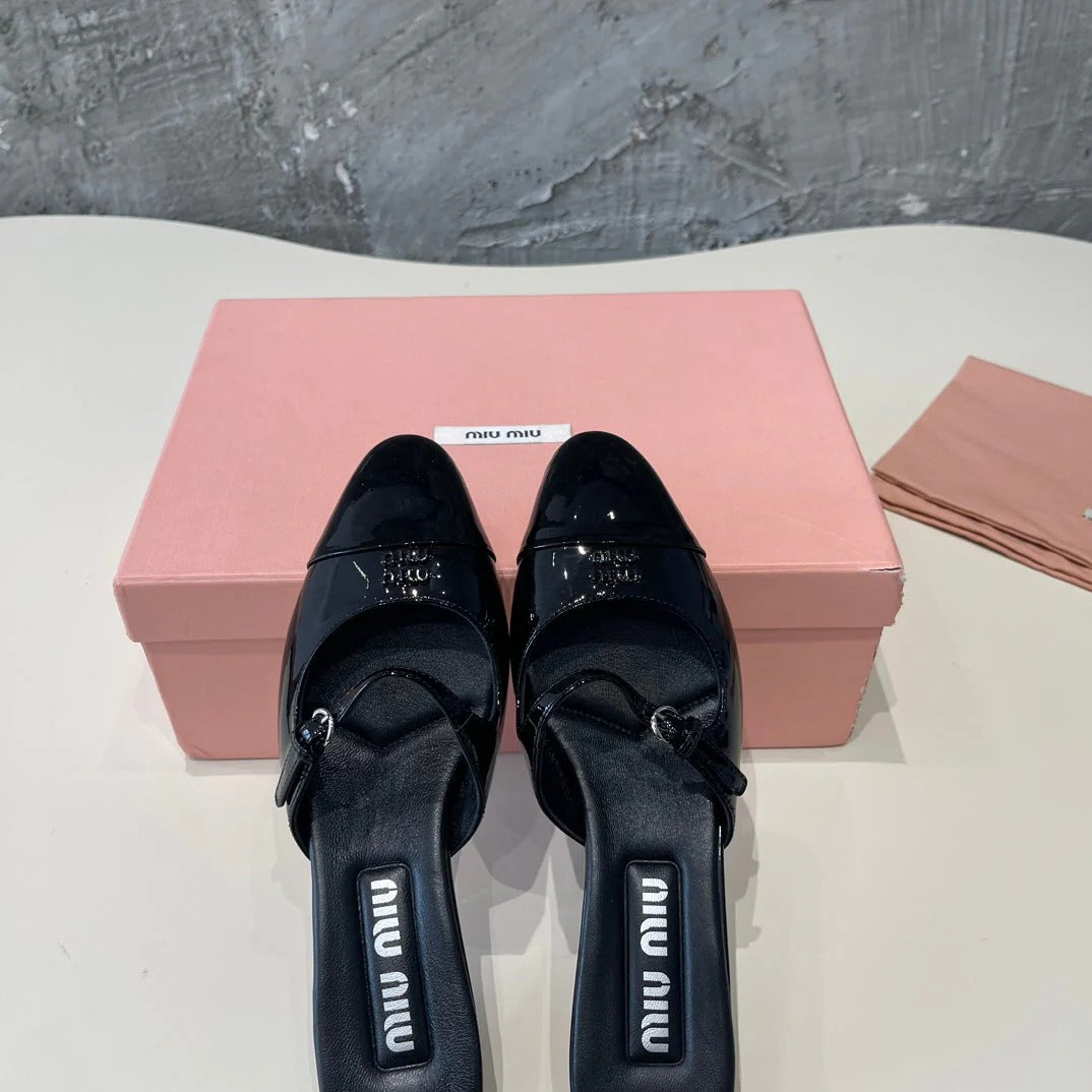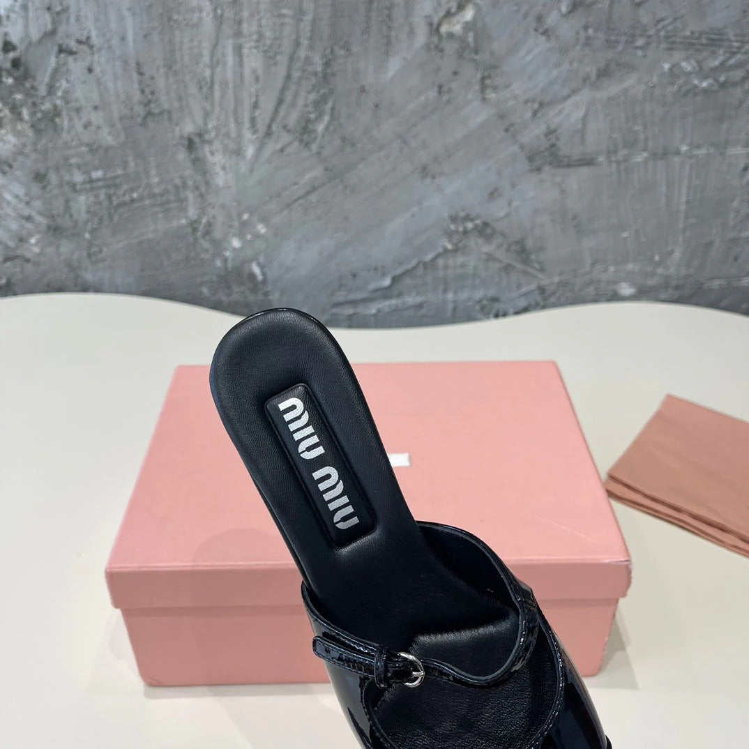 Miu 25C Slippers Black Leather 235286