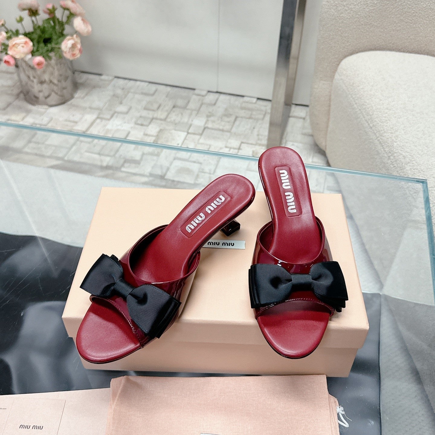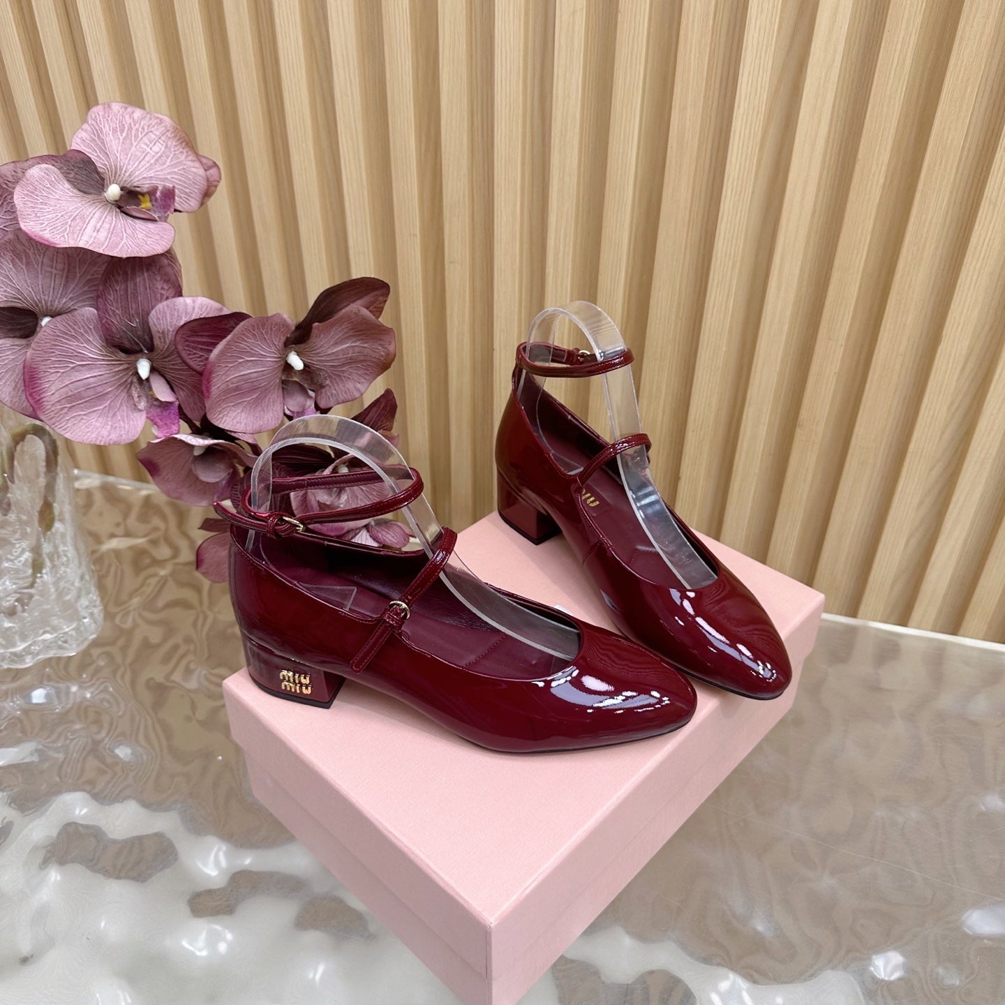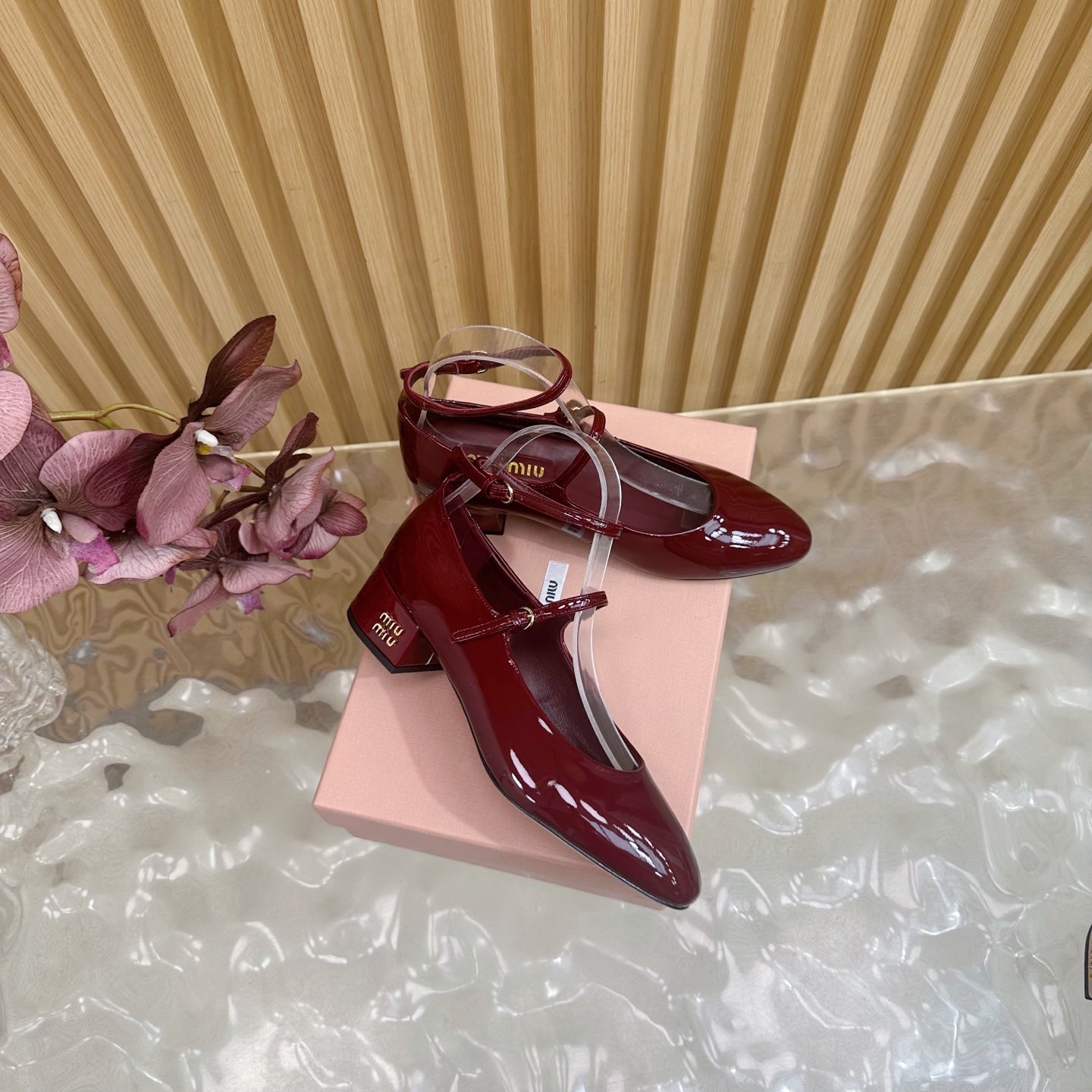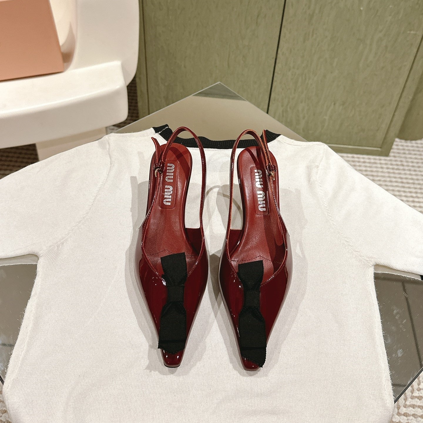 Miu x Balanc Small Bow Buckle SlingBack 45mm Burgundy Patent Leather 445863