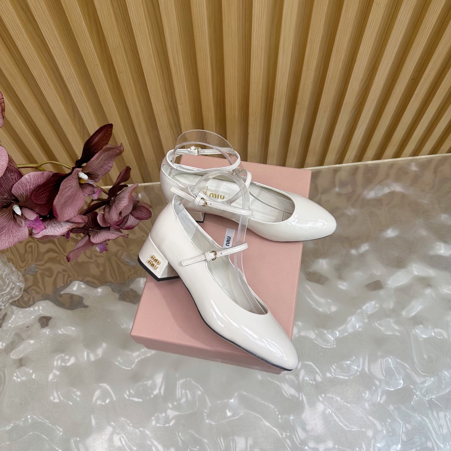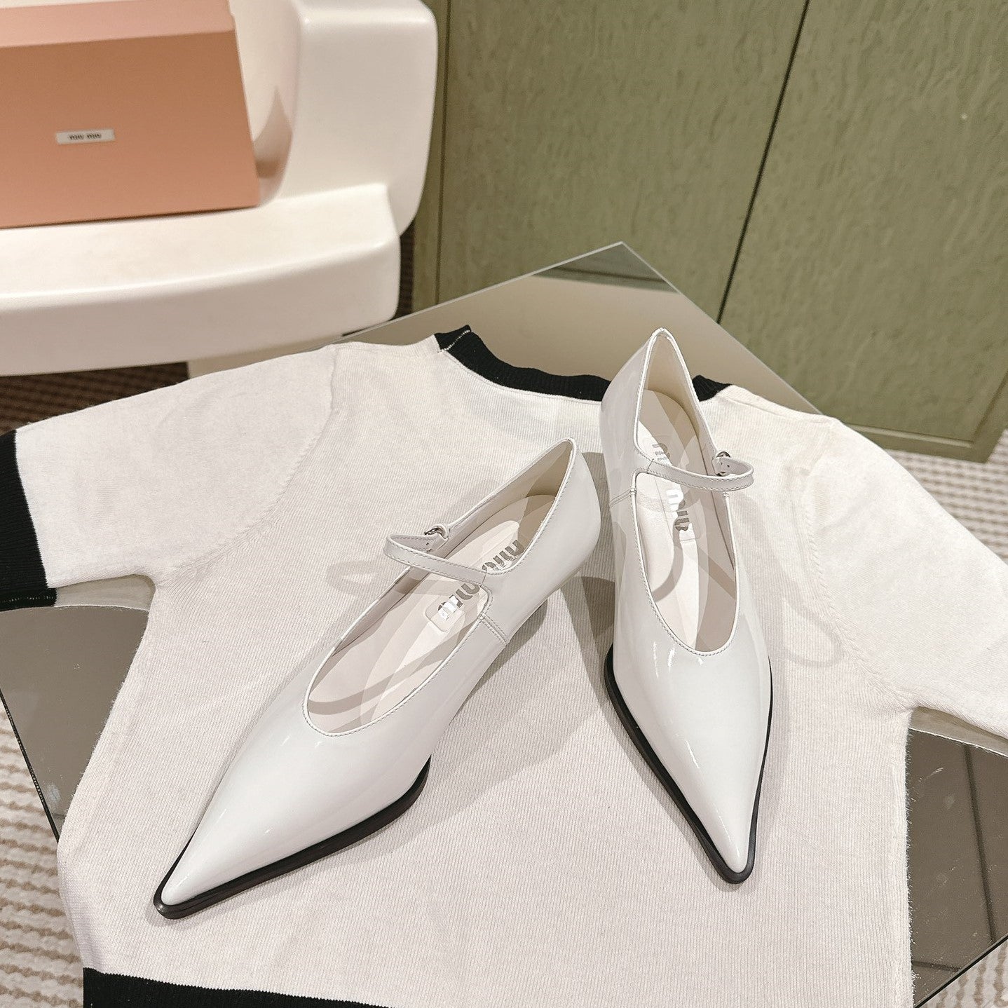 Miu×𝐵𝑎𝑙𝑎𝑛𝑐 Singback 55mm White Patent Leather 445534