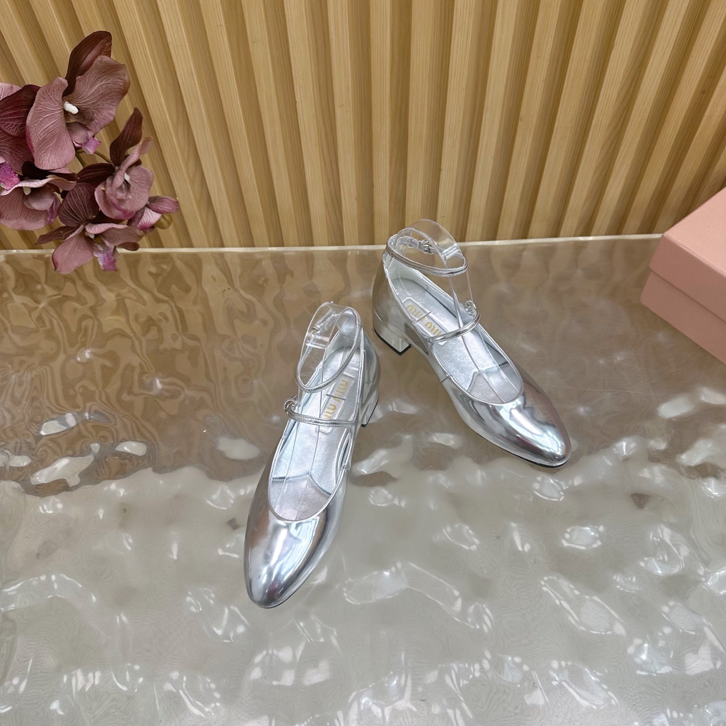 Miu x Balanc Small Bow Buckle SlingBack 45mm Sliver Patent Leather 445866