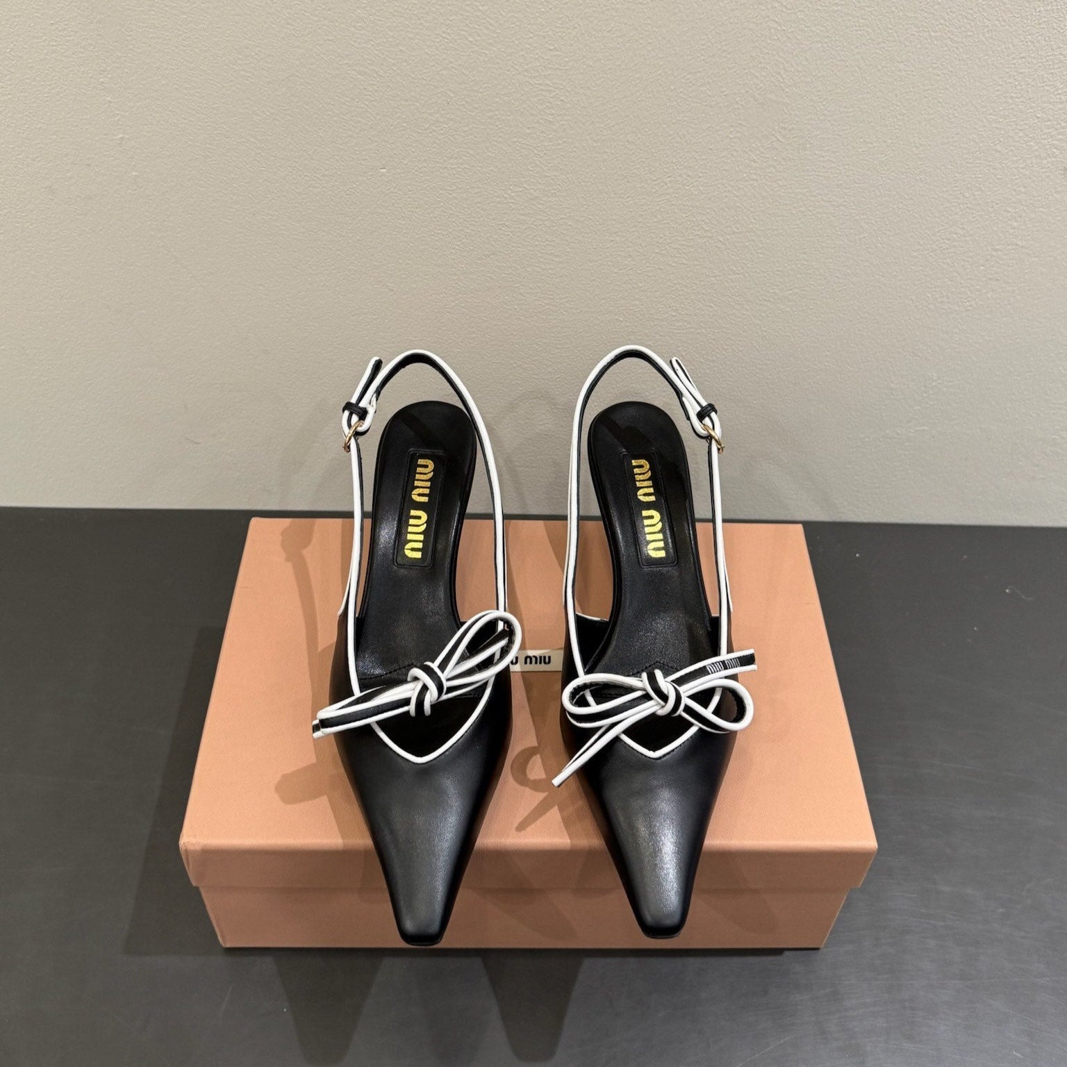 Miu Mordoré Pointed Toe Slingback Pumps 85mm Black Cowhide Sheepskin 445788