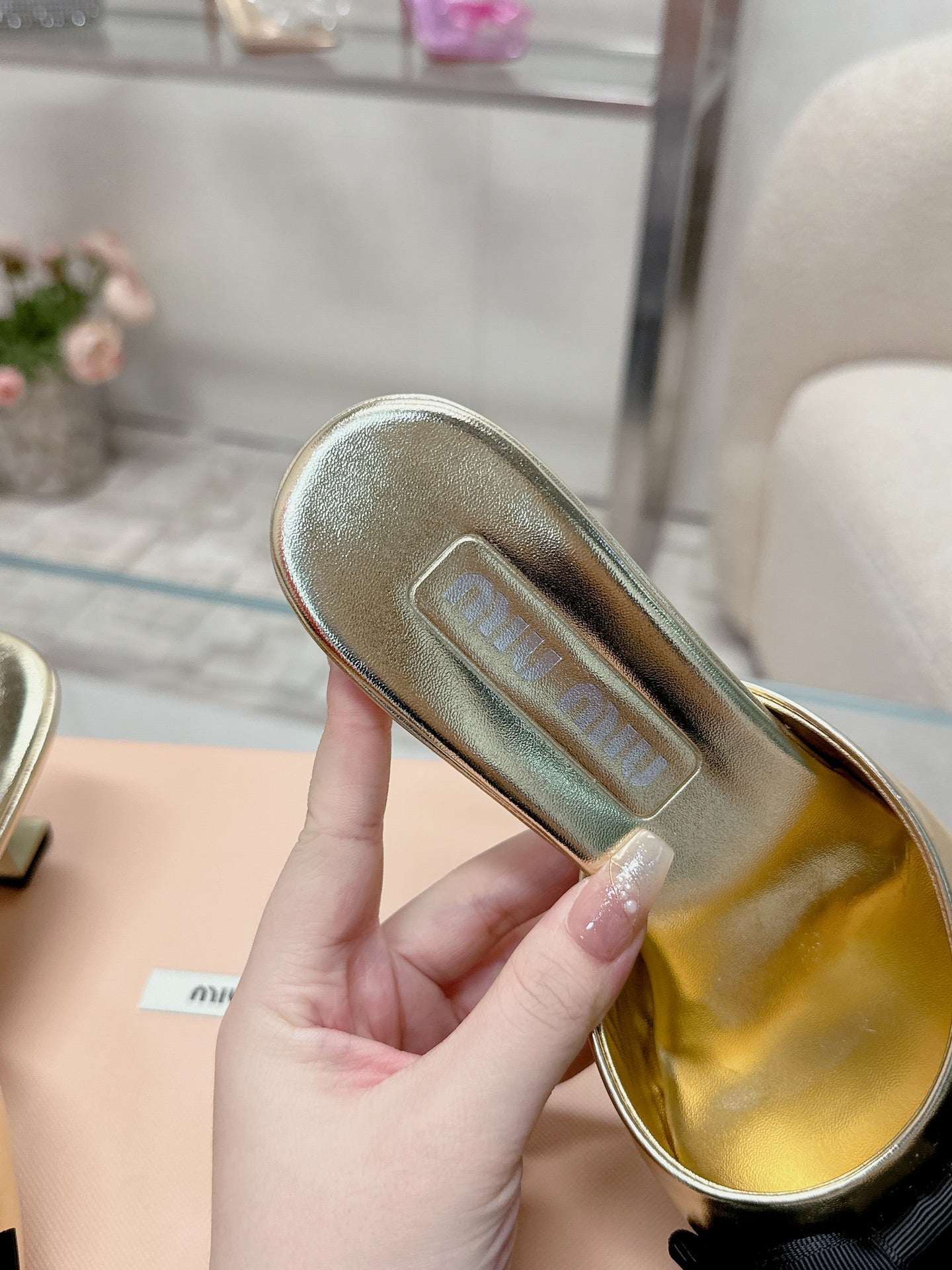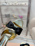 Miu Mordoré Black Bows Mules 50mm Gold Cowhide 445518