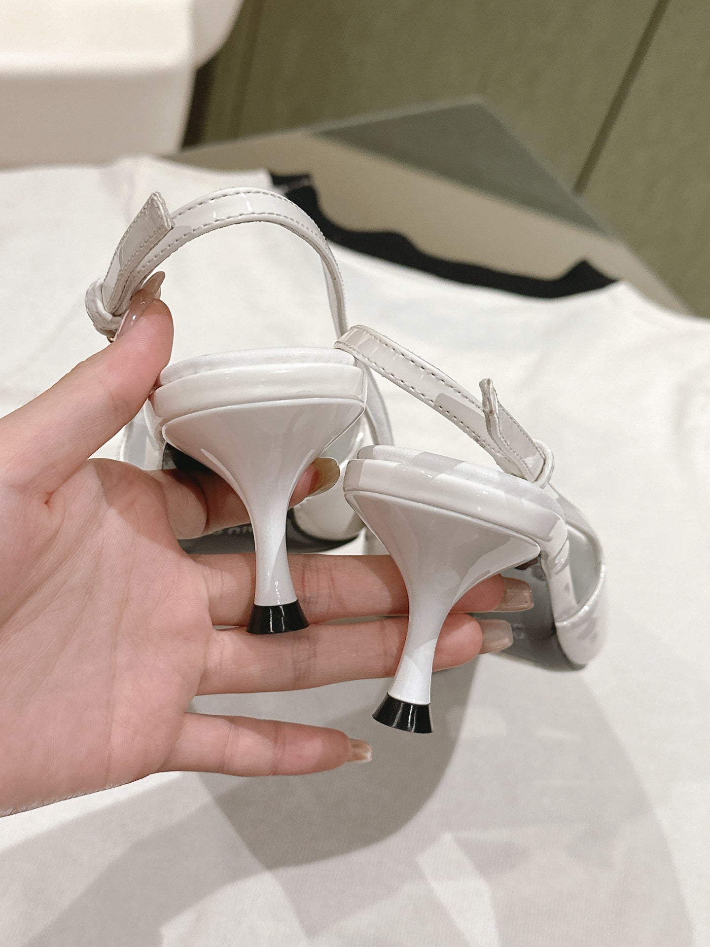 Miu x Balanc Small Bow Buckle SlingBack 45mm White Patent Leather 445864