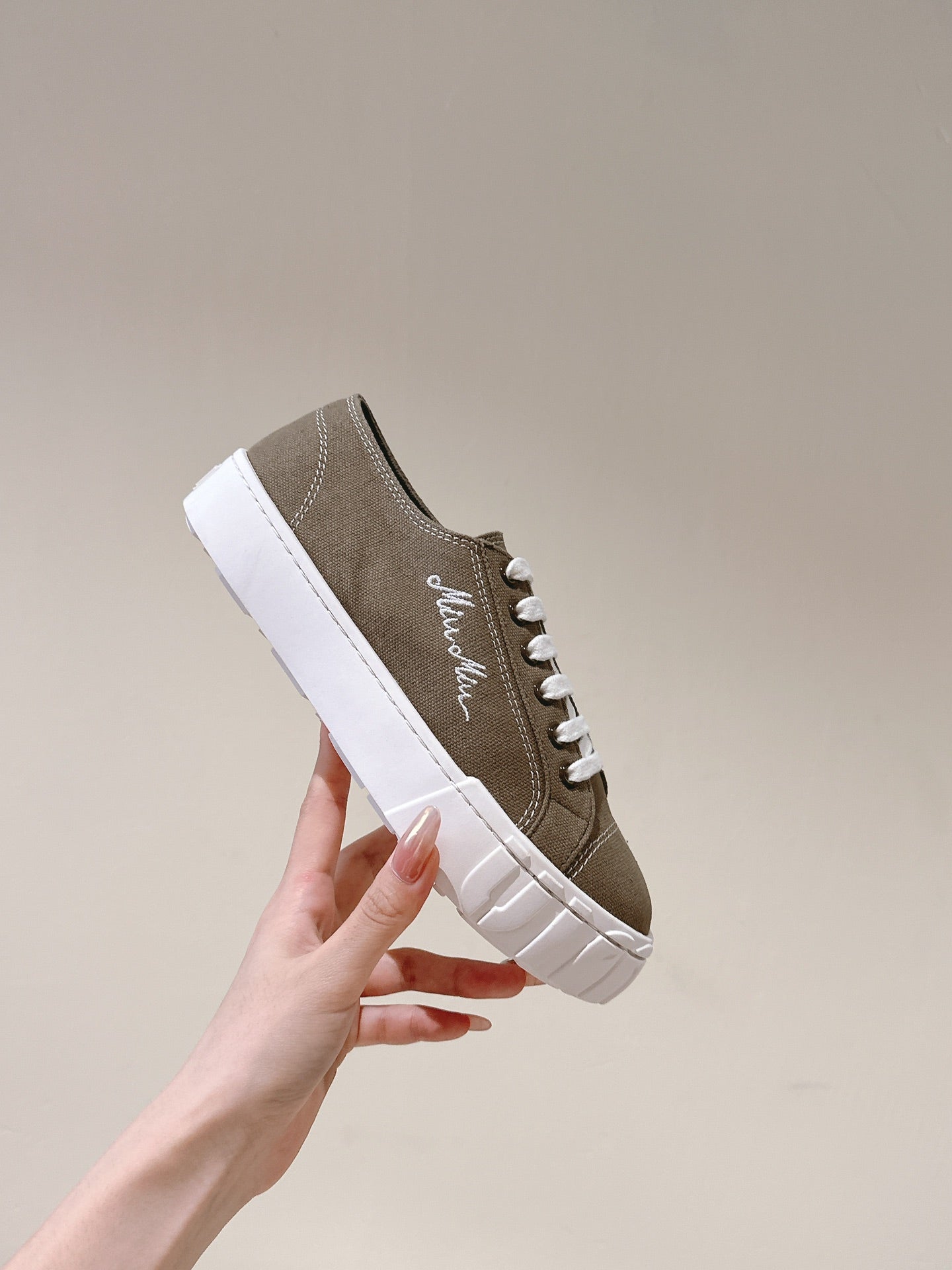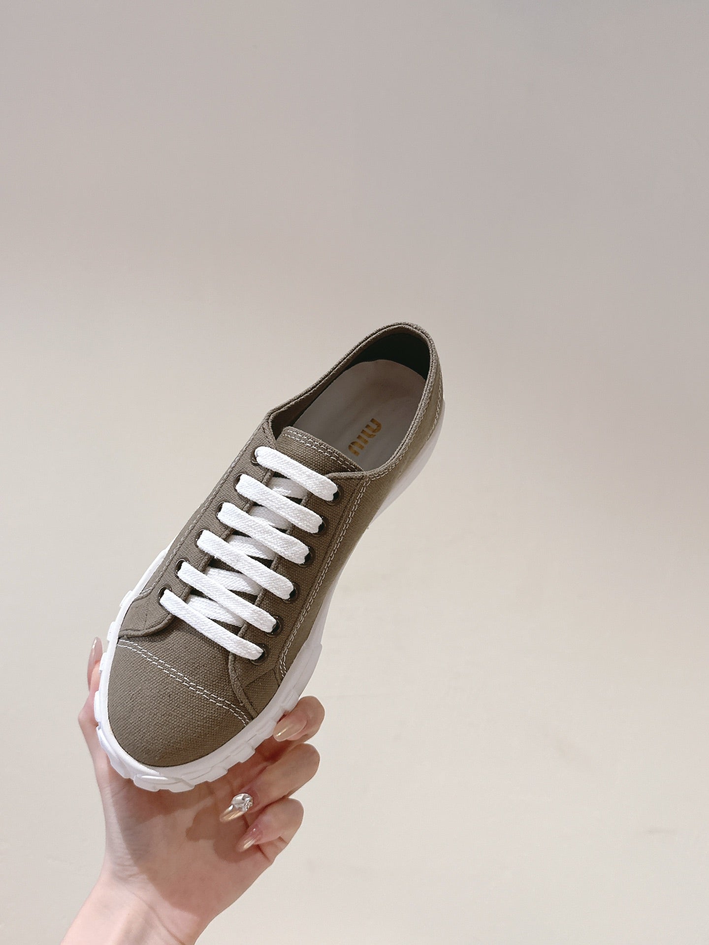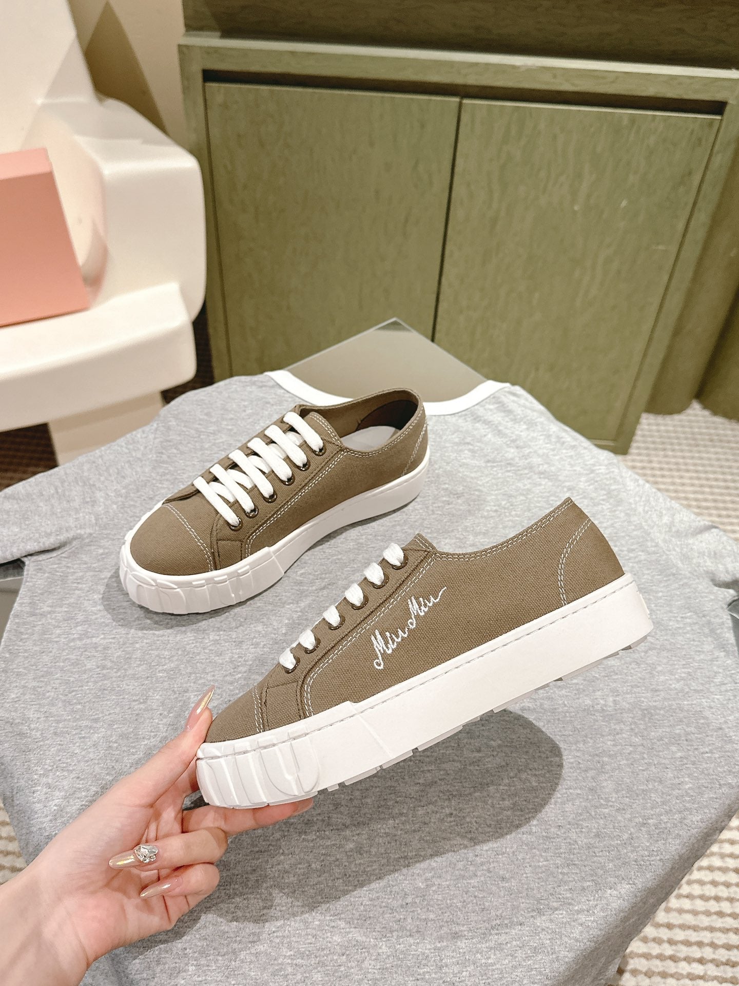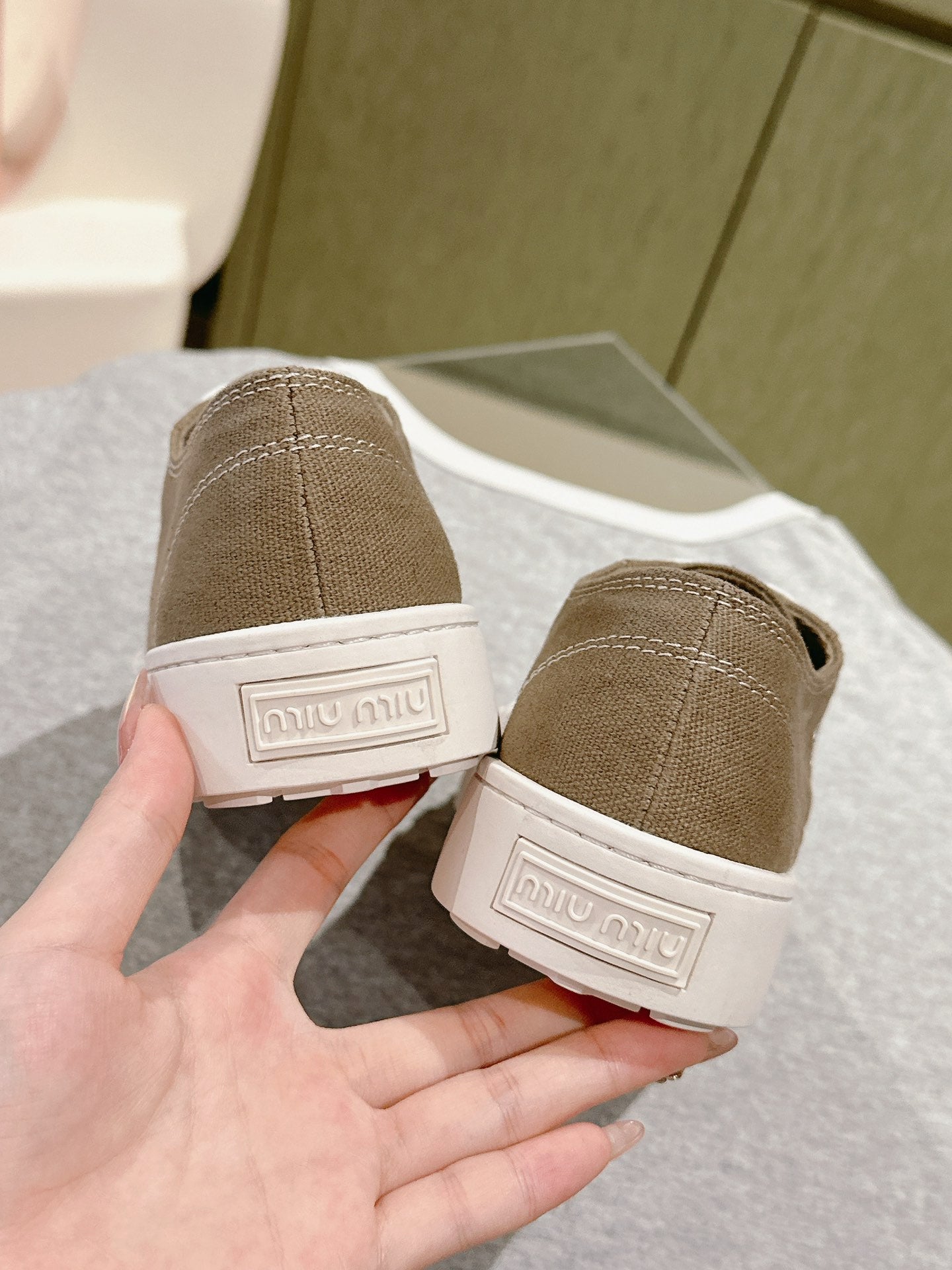 Miu Sneakers Olive Green Canvas 445547