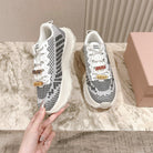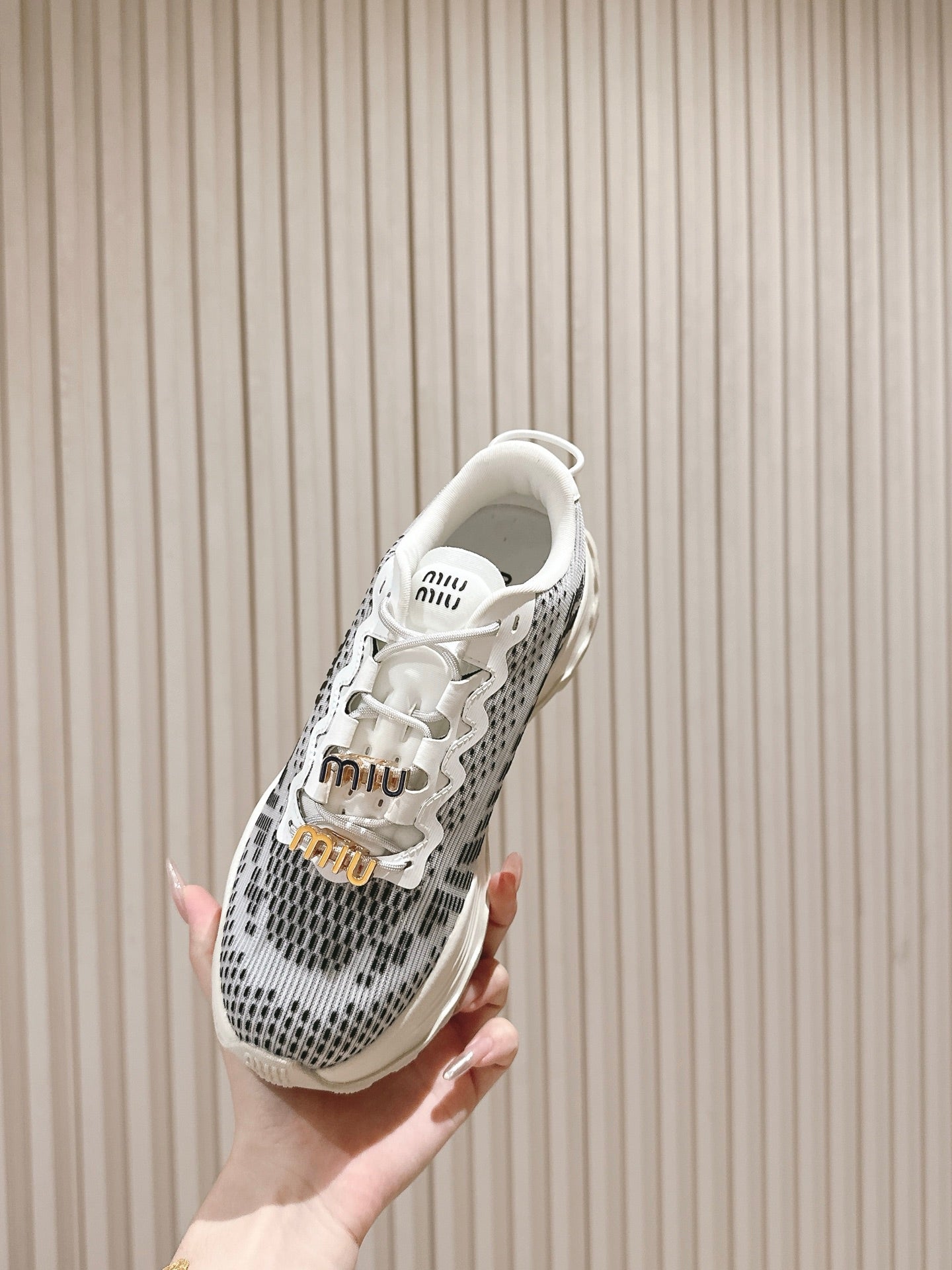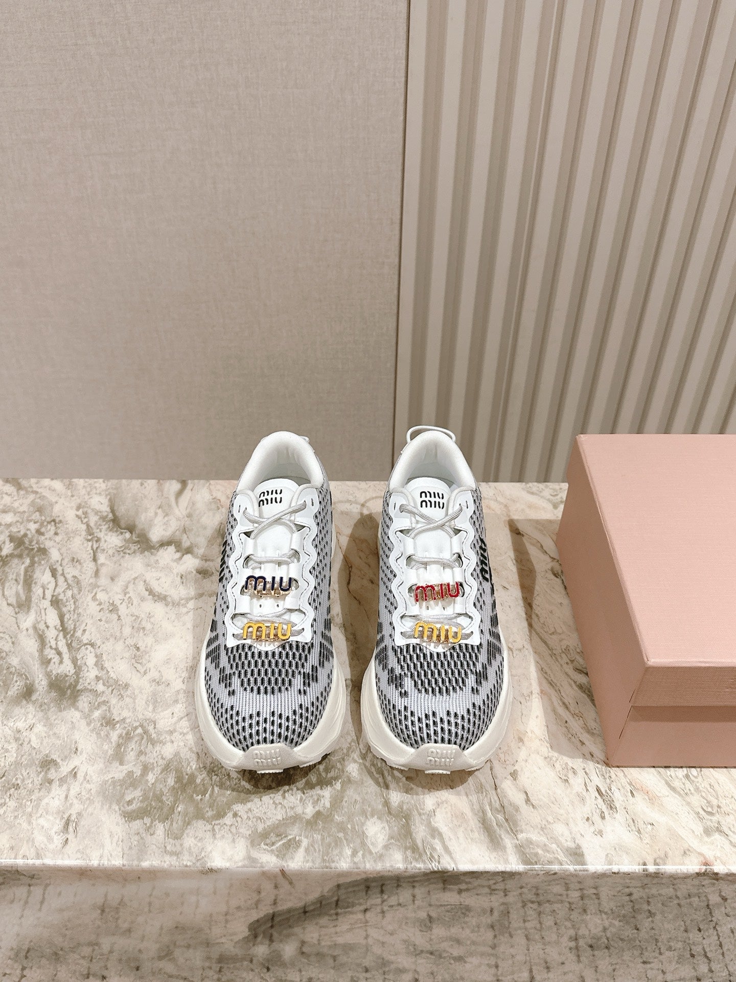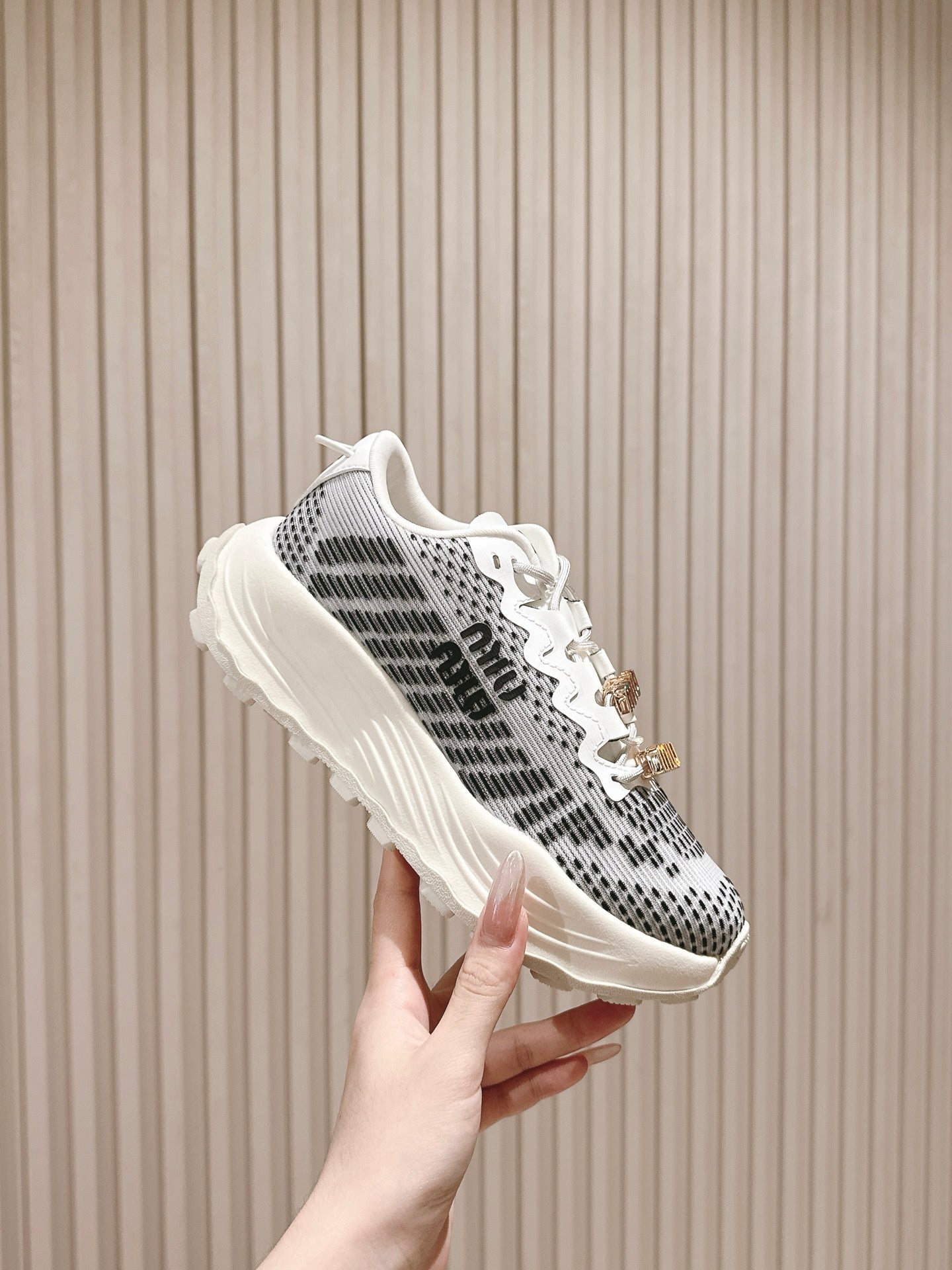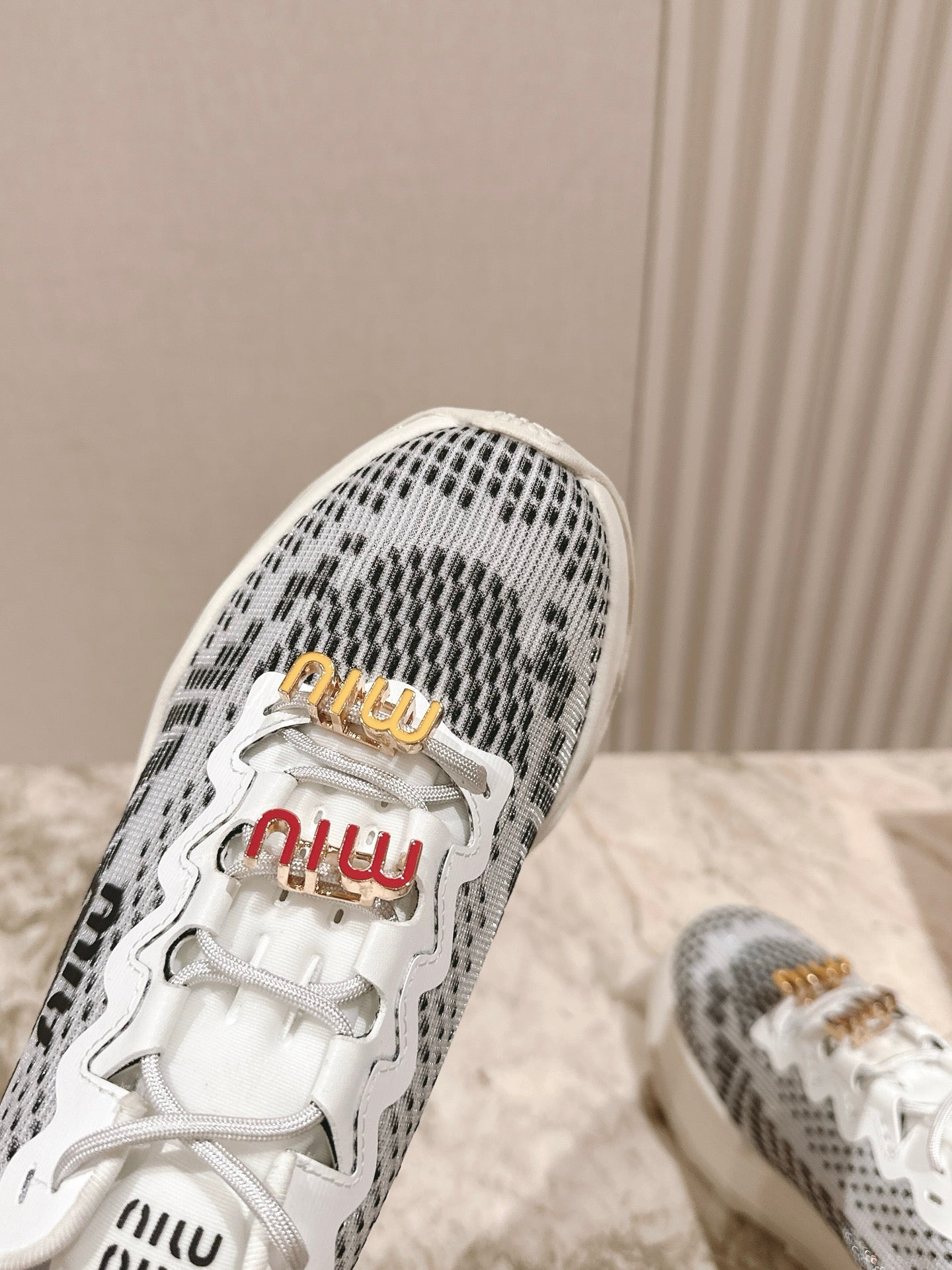 Miu Technical Sneakers White Black Cowhide Fabric 445808