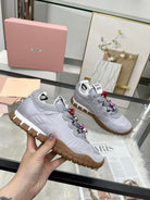 Miu TYRE Sneakers with Decorative Buckle Grey Suede Technical Fabric 456338